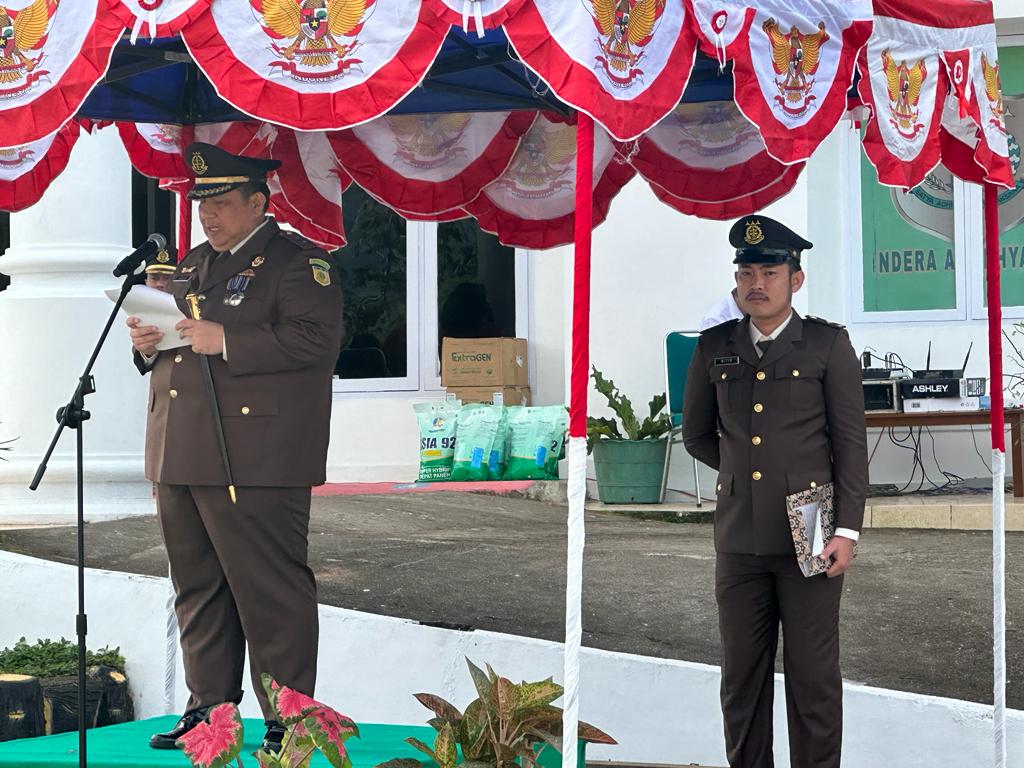 “Selamat Hari Bhakti Adhyaksa Ke-63 Tahun yang mengusung tema Penegakan Hukum Yang Tegas dan Humanis Mengawal Pembangunan Nasional,” ujar Kajari Mamasa Haji Musa,SH MH mengawali membacakan amanat Jaksa Agung, Sabtu(22/7/2023)