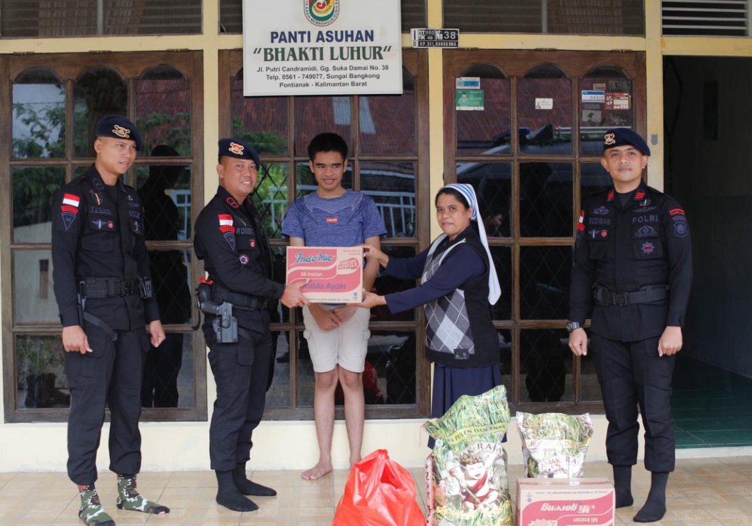 Kegiatan bhakti sosial yang dilaksanakan oleh personel Satbrimob Polda Kalbar pada hari ini merupakan kegiatan rutin yang dilaksanakan dengan tujuan untuk mempererat tali silaturahmi antara personel Satbrimob Polda Kalbar dan anak-anak penghuni panti asuhan. Selain untuk mempererat tali silaturahmi kegiatan ini juga merupakan bentuk rasa syukur atas apa yang telah diberikan oleh Allah Subḥānahu Wataʿālā Tuhan Yang Maha Esa kepada seluruh personel Satbrimob Polda Kalbar selama ini. Ipda Robertus A. K, S.H. selaku perwira penanggung jawab dikegiatan bhakti sosial hari ini sangat berterimakasih kepada pengurus panti asuhan karena telah menerima dengan baik kedatangan personel Satbrimob Polda Kalbar di panti asuhan mereka. Kegiatan bhakti sosial yang dilaksanakan oleh personel Satbrimob Polda Kalbar pada hari ini dilaksanakan di panti asuhan Bhakti Luhur yang berada Gg. Suka Damai No. 38, Sungai Bangkong, Kec. Pontianak Kota, Kota Pontianak.