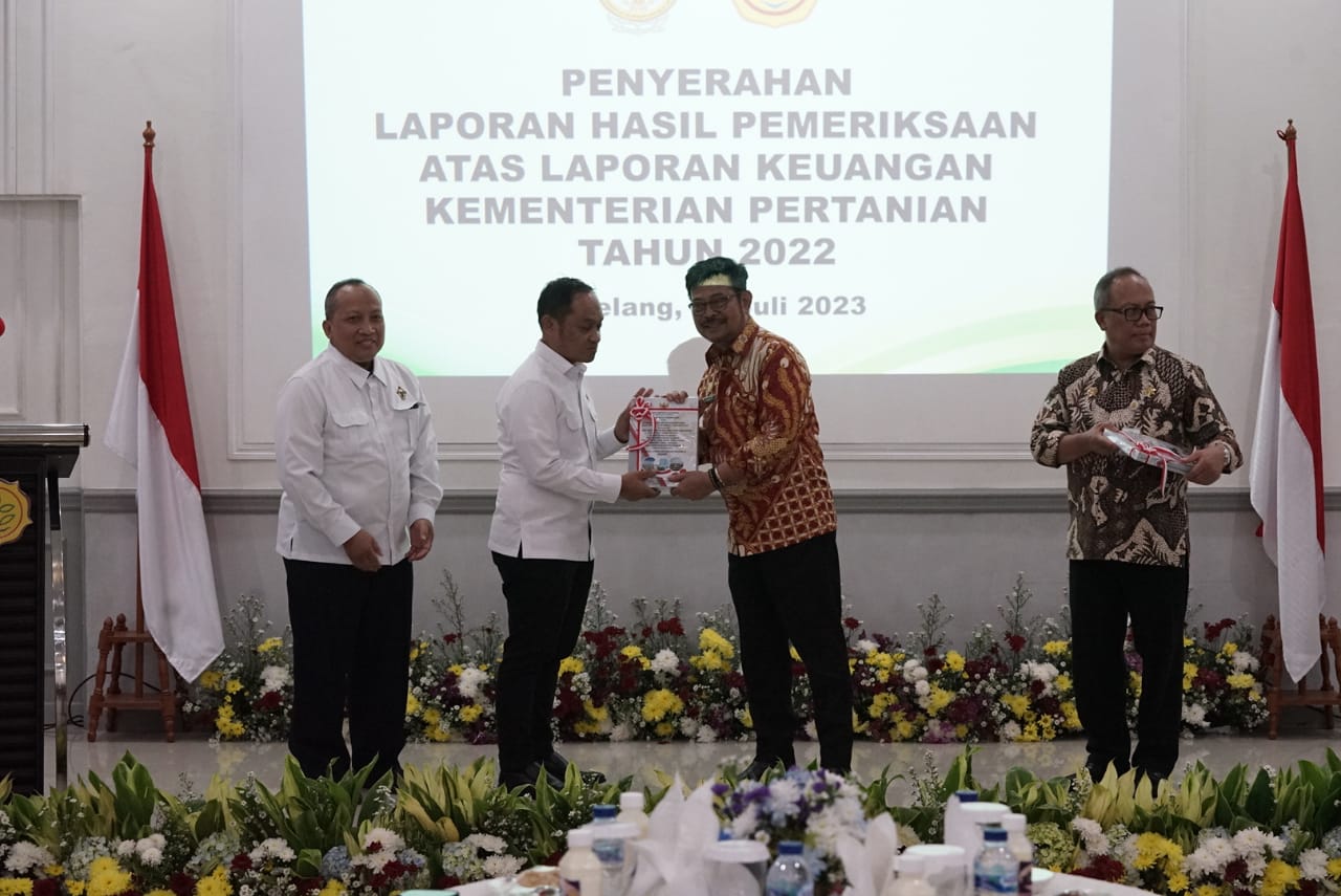 Bogor | HSB – Badan Pemeriksa Keuangan BPK menyerahkan laporan hasil pemeriksaan keuangan Kementerian Pertanian tahun 2022. Dalam laporan ini, Anggota IV BPK, Haerul Saleh menyatakan pengelolaan keuangan di lingkup Kementan bersih dan layak mendapatkan predikat opini wajar tanpa pengecualian atau WTP.