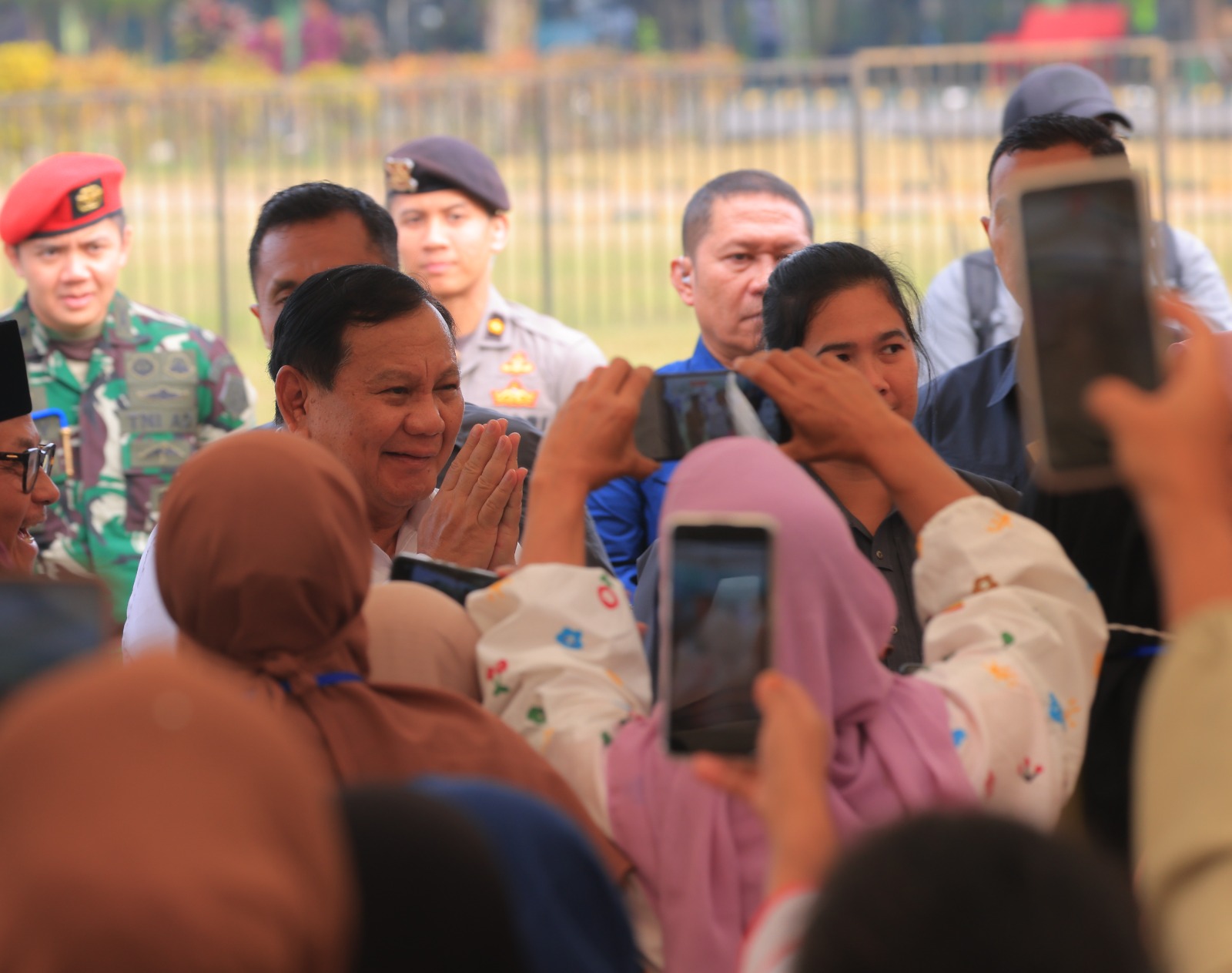 Teriakan nama Prabowo dan permintaan foto dan salaman itu pun semakin riuh ketika Prabowo berjalan menyusuri mendekati ke arah para pedagang pasar yang menanti dengan sigap akan telepon genggamnya.