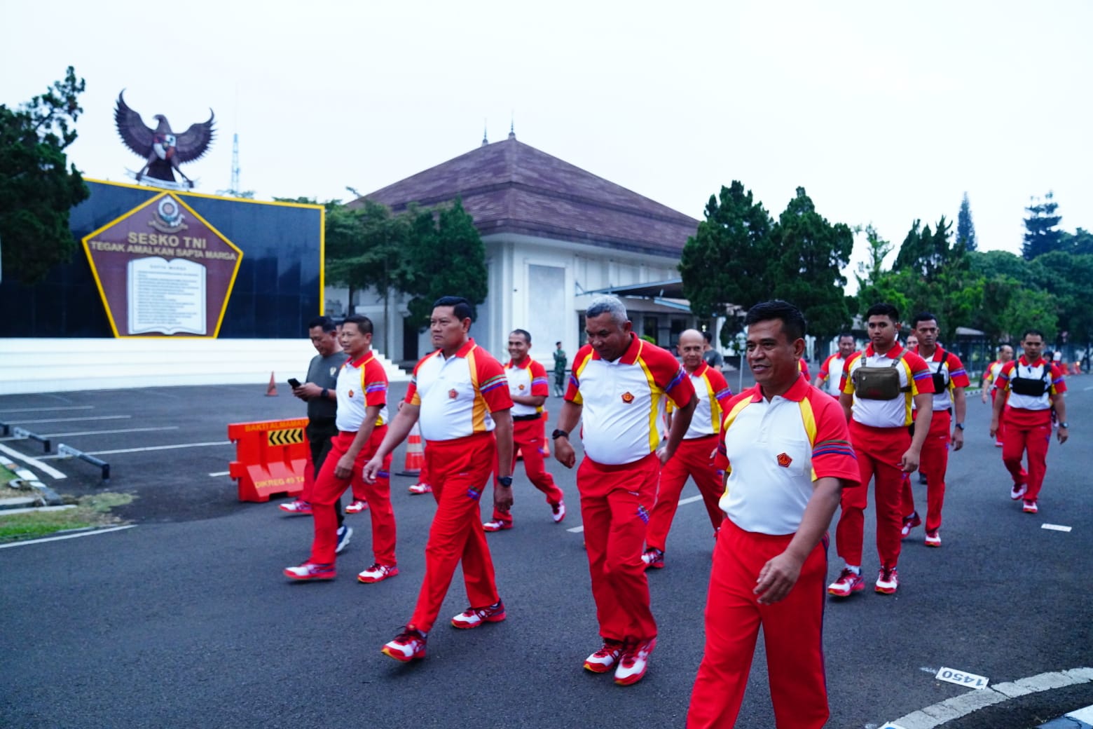 Selain Komandan Sesko TNI beserta anggotanya, olahraga pagi ini juga diikuti oleh Komandan Kodiklat TNI dan beberapa Pejabat Utama TNI.