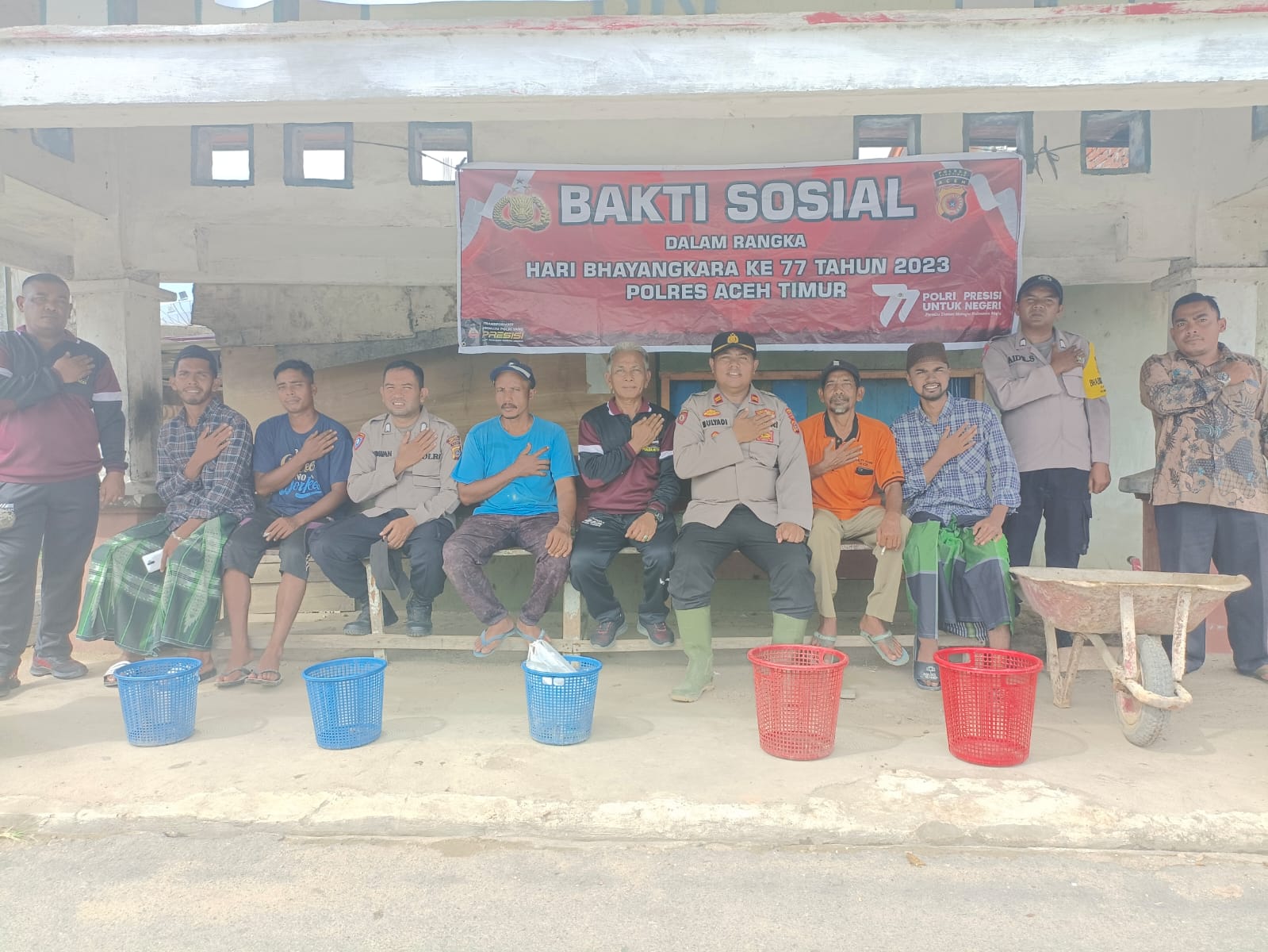 Giat peduli lingkungan Bakti Sosial polsek Nurussalam Membersihkan sampah di sekitar pangkalan RBT (Ojek) simpang keude bagok dua serta