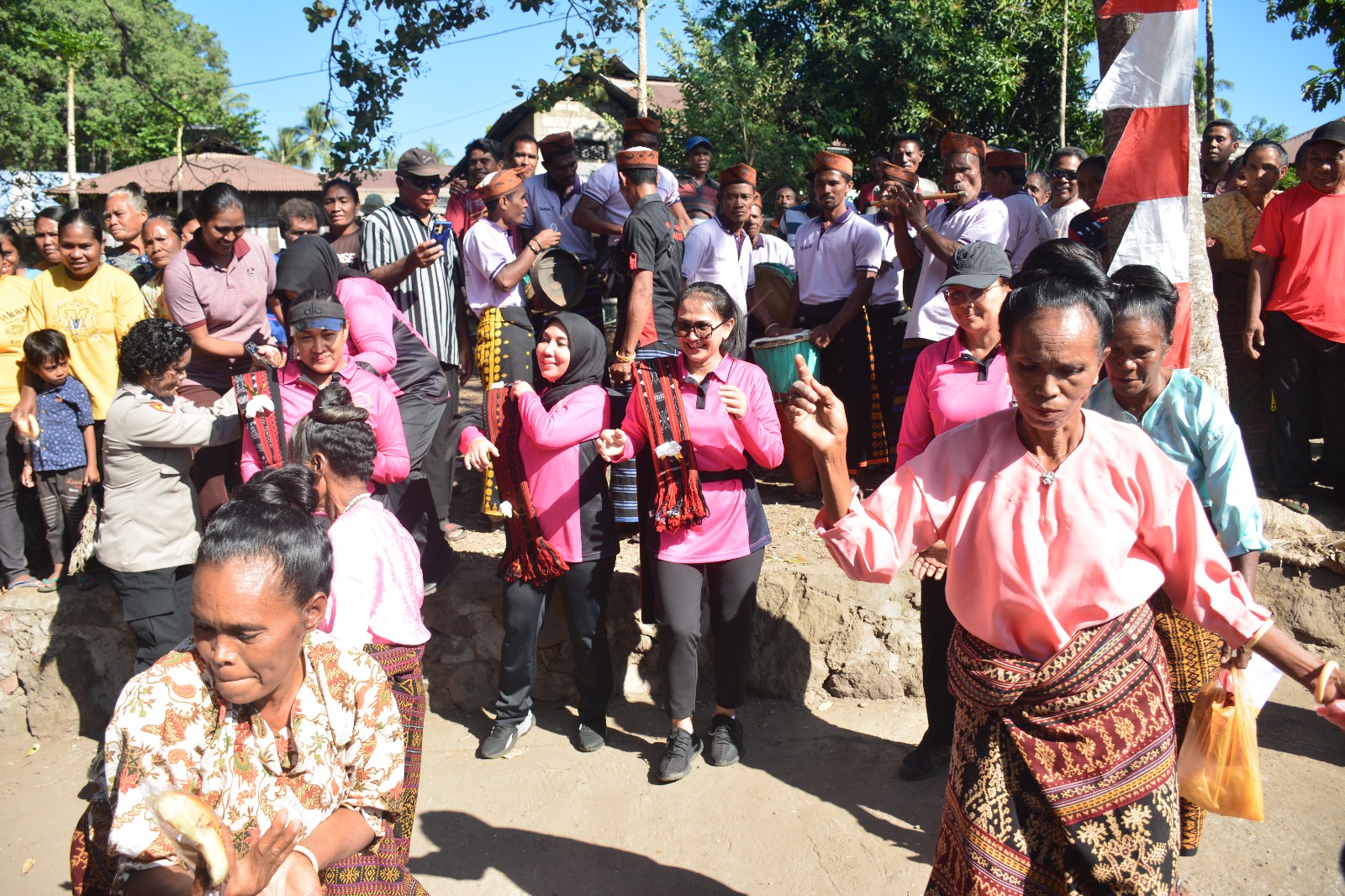 Ny. Juliati Sigit Prabowo bersama rombongan disambut dengan tarian adat oleh masyarakat setempat. Kemudian, mendapat sapaan adat oleh tokoh adat Pulau Palue disertai dengan Huler Wair dan pengalungan kain adat oleh Camat Palue Rudolfus Riba.