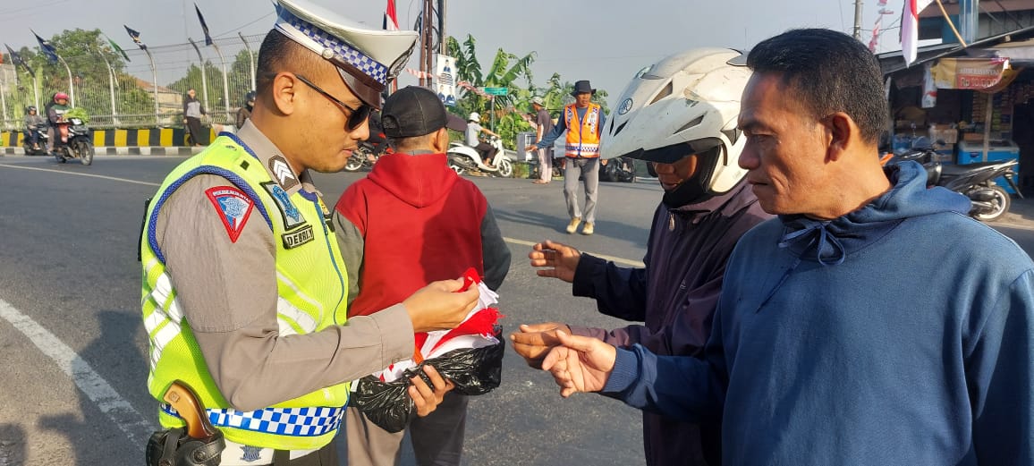 Peringati Hari Kemerdekaan, Polsek Cijeruk dan Triwijaya Bagikan Bendera Merah Putih
