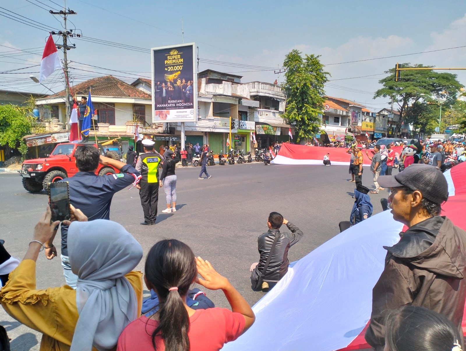 Setelah itu, dilanjutkan dengan Pembagian 780 bendera Merah Putih berukuran mini kepada masyarakat dan para pengendara Roda Dua maupun Roda Empat untuk diletakkan pada kendaraannya.