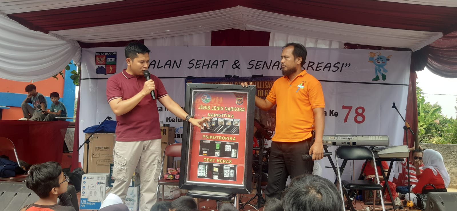 KOTABOGOR (HSB) – Ada yang beda dengan perayaan dan peringatan HUT RI ke 78 di Kelurahan Cibuluh, selain jalan sehat, senam kreasi dan penampilan band ala Koes Plus, ternyata ada sosialisasi dan penyuluhan dari Tim Sat Narkoba Polresta Bogor Kota pada Sabtu, 19 Agustus 2023.
