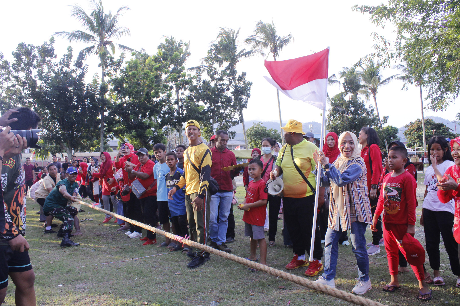 Para peserta lomba dari TNI, anak-anak dan masyarakat sangat antusias mengikuti perlombaan dan berbagai tingkah lucu peserta yang mengundang tawa para penonton.