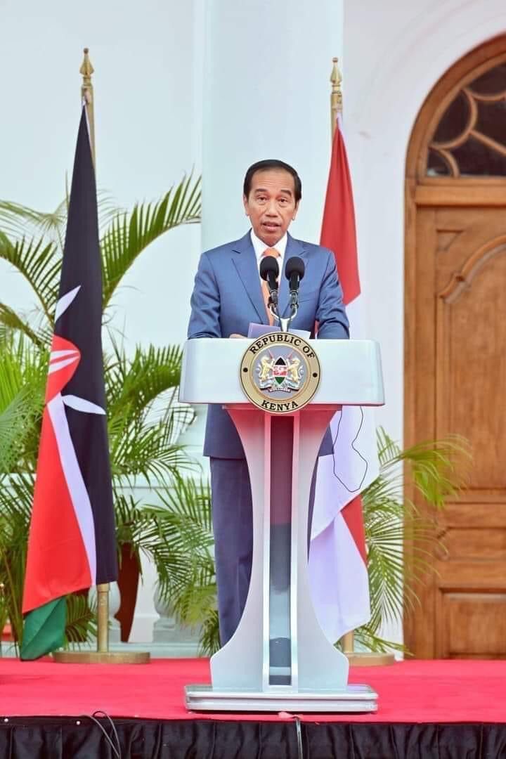 Nairobi (HSB) – Presiden Joko Widodo mendorong agar kemitraan antara negara-negara berkembang terus diperkuat menjadi lebih kokoh. Hal tersebut disampaikan Presiden dalam keterangannya usai pertemuan bilateral bersama Presiden Republik Kenya William Ruto yang digelar di State House, Nairobi, Republik Kenya, pada Senin, 21 Agustus 2023.