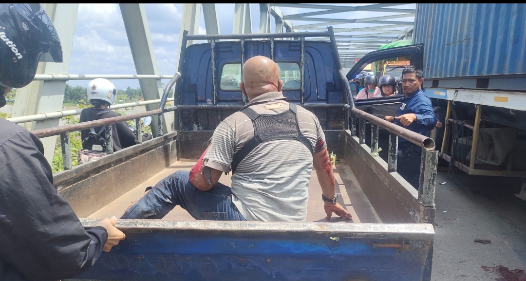 Saat itu sepeda motor KB 6844 HI yang dikendarai oleh Putri tumbang kekiri dan menbentur mobil truk KB 9838 AY sedangkan sepeda motor KB 2977 HV yang dikendarai oleh Irwan tumbang kearah kiri dan membentur mobil truk trailer KB 8012 HM.