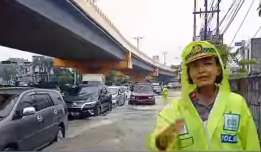 Genangan air yang cukup tinggi ini mengakibatkan arus lalu lintas tersendat dan beberapa kendaraan warga mogok. Kombes Jefri yang turun langsung di lokasi bersama anggotanya terlihat mengatur arus lalu lintas dan membantu masyarakat yang kendaraannya mogok dan terjebak banjir.