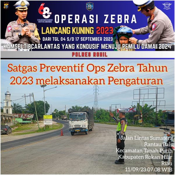ROHIL (HSB) || Operasi Zebra Lancang Kuning Tahun 2023 hari ke 6, Satlantas Polres Rohil melaksanakan giat Strong Point pagi dan pengaturan lalin.