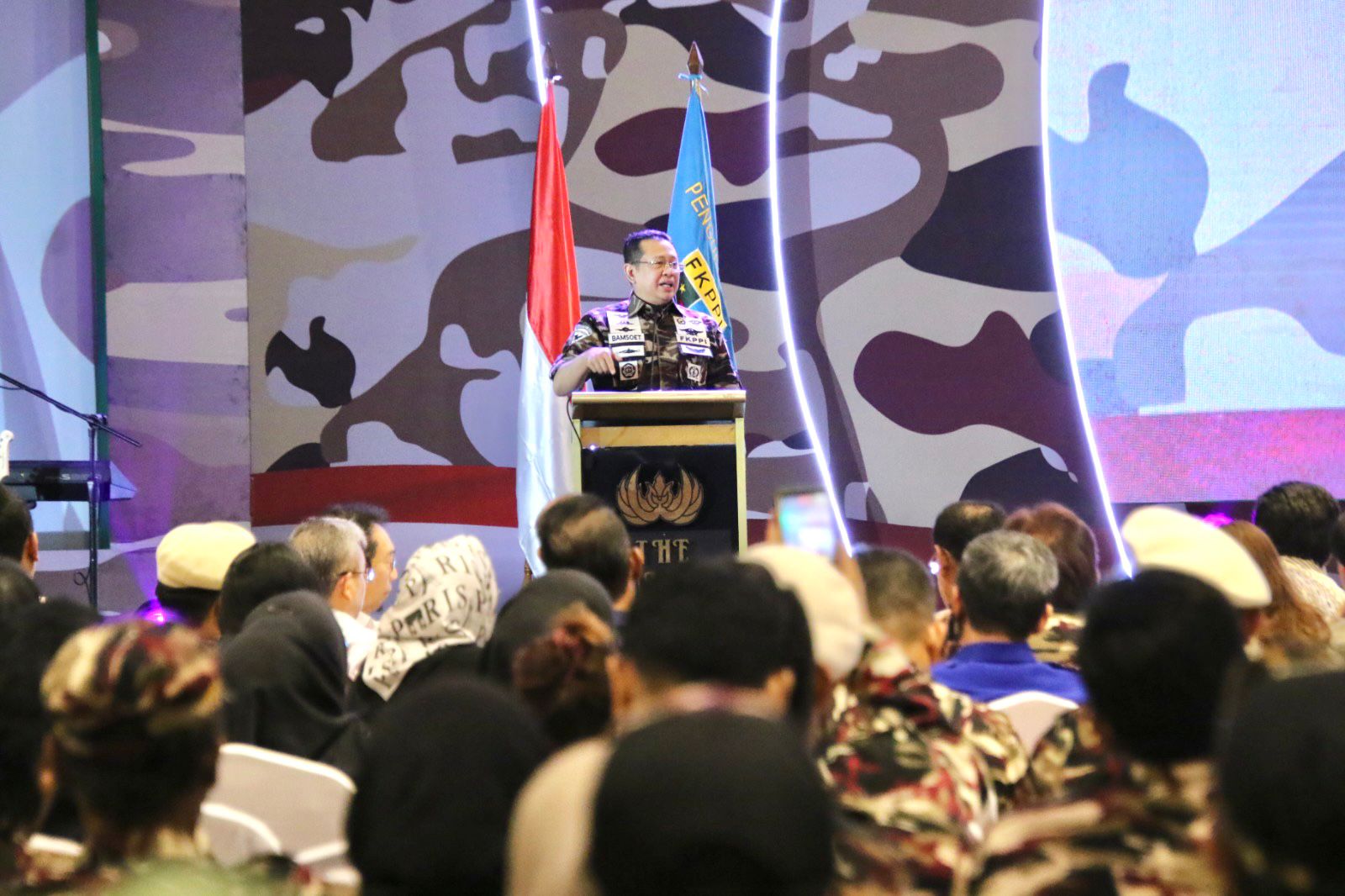 JAKARTA (HSB) – Ketua MPR RI sekaligus Wakil Ketua Umum Partai Golkar serta Wakil Ketua Umum FKPPI/Kepala Badan Bela Negara FKPPI Bambang Soesatyo mengungkapkan, dalam Sarasehan Kebangsaan ‘Mewujudkan UUD Berdasar Pancasila’ yang digagas Pusat Studi Pancasila (PSP) di UGM, mengemuka pandangan bahwa UUD 1945 yang mengalami empat kali amandemen, tidak lagi berdasarkan nilai-nilai Pancasila. Karena ditemukan inkonsistensi, kontradiksi, dan ketidakselarasan antar pasal dan ayat. Bahkan di kesempatan lain, Guru Besar Ilmu Filsafat UGM Prof. Kaelan mengungkapkan ada sekitar 97 persen pasal yang diubah dalam amandemen tersebut.