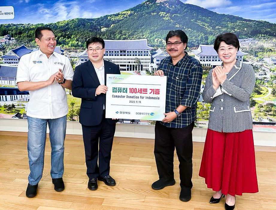 “Menjadi langkah awal bagi kerjasama pendidikan antara Gyeongsangbuk-do dengan UNPERBA, sebagai bagian peningkatan kerjasama pendidikan antara Korea Selatan dengan Indonesia,” ujar Bamsoet usai menyaksikan penandatangan kerjasama dan penyerahan simbolik 100 unit komputer dari DGB Bank kepada UNPERBA, dalam rangkaian pertemuan dengan Vice Governor of Economic Affairs Province Gyeongsangbuk-do, Korea Selatan Mrs. Dal Hee Lee, di kantor pemerintah provinsi Gyeongsangbuk-do, Korea Selatan, Selasa, (19/9/23).