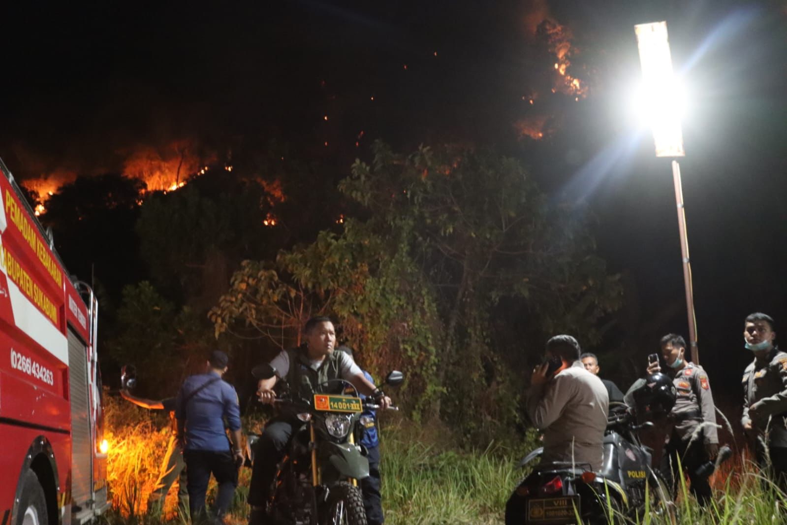 Sukabumi (HSB) – Kapolres Sukabumi Akbp Maruly Pardede bersama Dandim 0622 Palabuhanratu Letkol Inf Ari Anjar Wibowo memimpin upaya pemadaman kebakaran lahan di Gunung Jayanti Kecamatan Palabuhanratu Kabupaten Sukabumi Jawa Barat, Jumat (22/09/23) malam