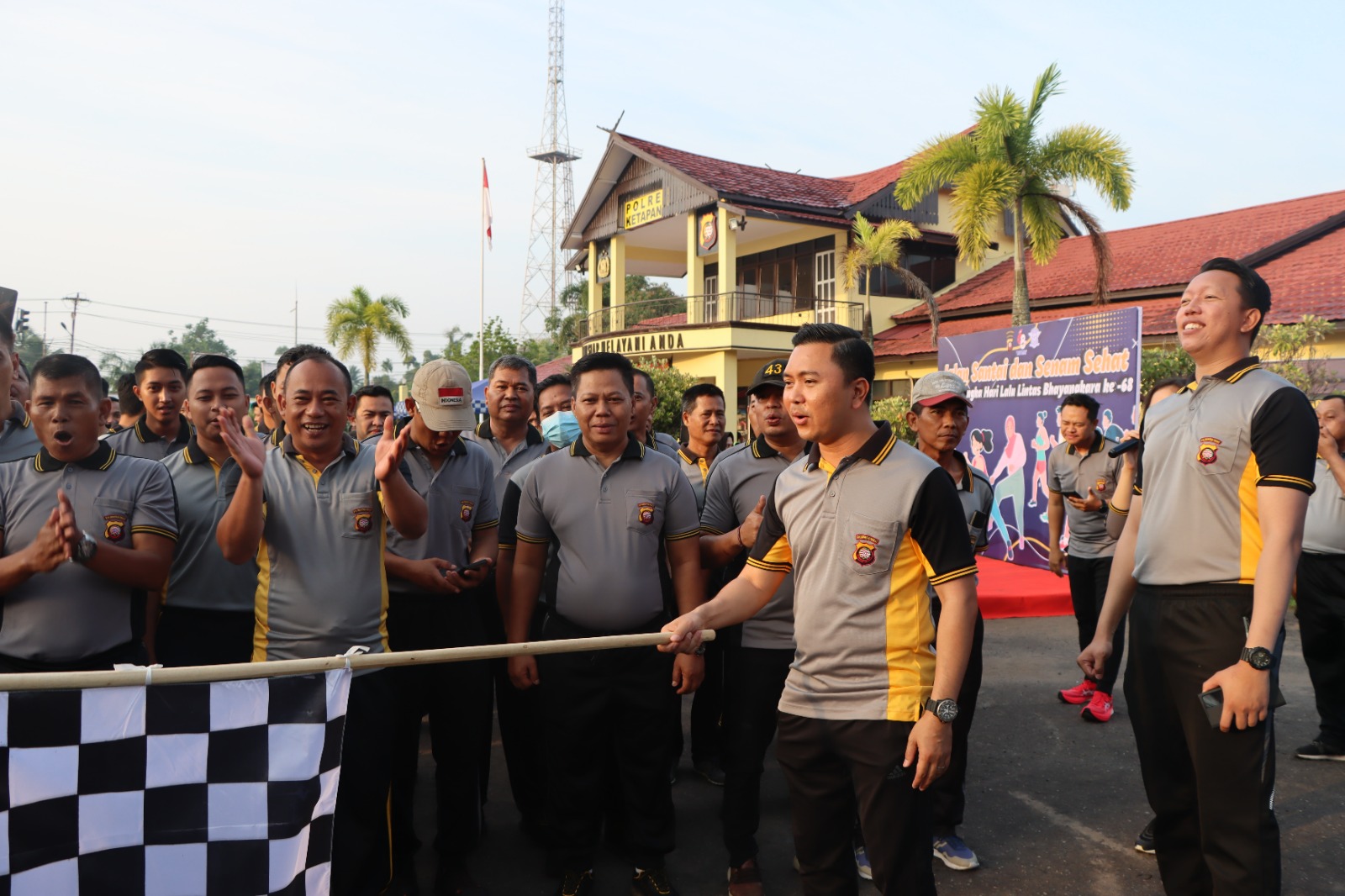 KETAPANG Polda Kalbar (HSB) – Kepolisian Resor Ketapang rayakan Hari Ulang Tahun (HUT) ke-68 Polisi Lalu Lintas (Polantas) dengan kegiatan olahraga bersama di Lapangan Apel Mapolres Ketapang , Jum’at (22/9/2023). Olahraga bersama ini diikuti Kapolres Ketapang AKBP Tommy Ferdian S.I.K., M.Sc (Eng) bersama seluruh pejabat utama, seluruh personil Polres Ketapang dan Bhayangkari.