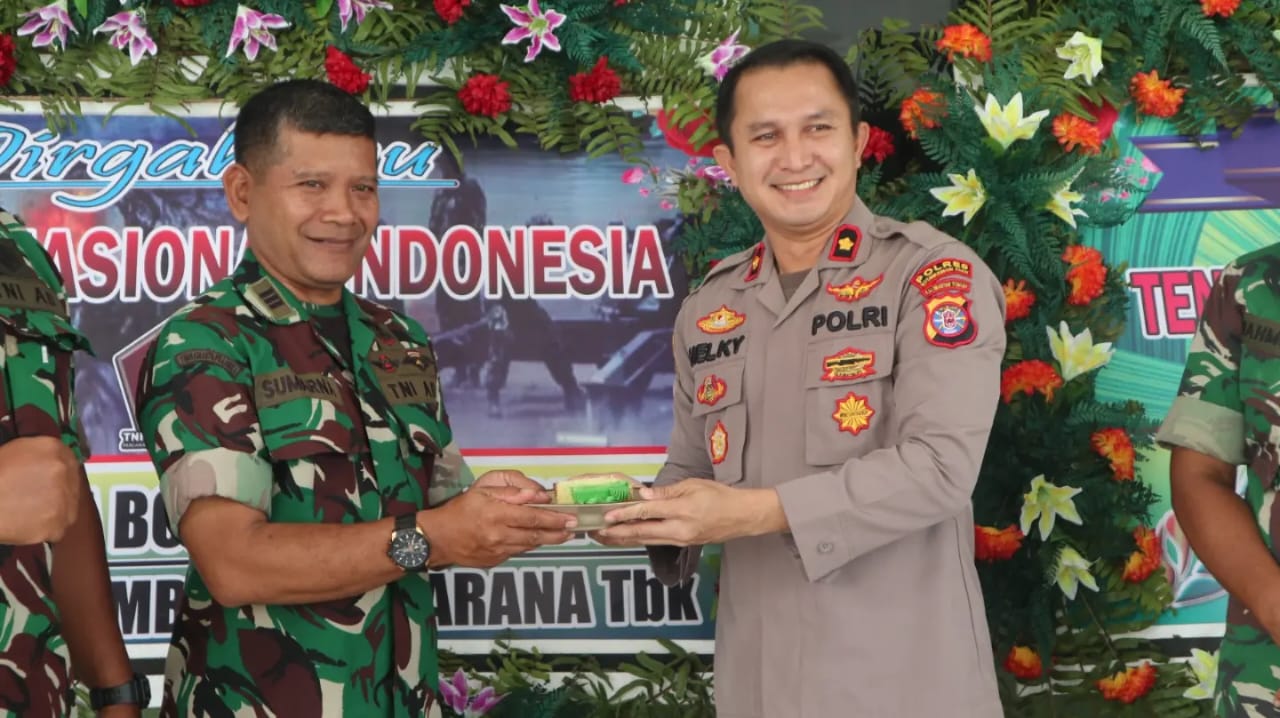 Wakapolres Kobar menyerahkan kue ulang tahun sebagai kado terindah di Hari Ulang Tahun ke – 78 TNI. Selanjutnya, Kompol Helky memotong tumpeng kemudian diberikan ke Kasdim dan menyanyikan lagu selamat ulang tahun diikuti seluruh anggota yang hadir.