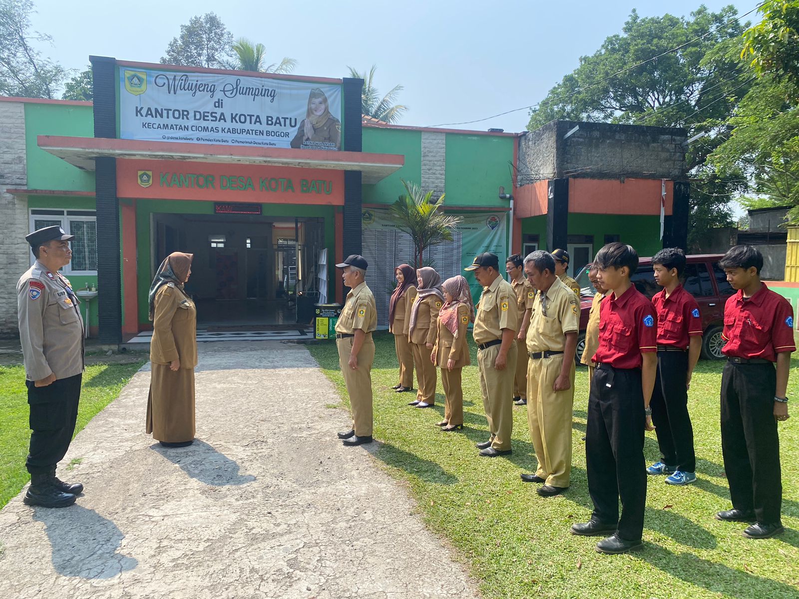 Polres Bogor (HSB) – Polsek Ciomas Polres Bogor Polda Jabar, Giat sambang masyarakat desa merupakan salah satu tugas rutin seperti yang di laksanakan binmas DS kota batu memberikan pemahaman untuk ikut membantu ketertiban di kegiatan apel staf Desa Kota Batu agar tercipta situasi kamtibmas yang aman dan kondusif, (11/10/2023).