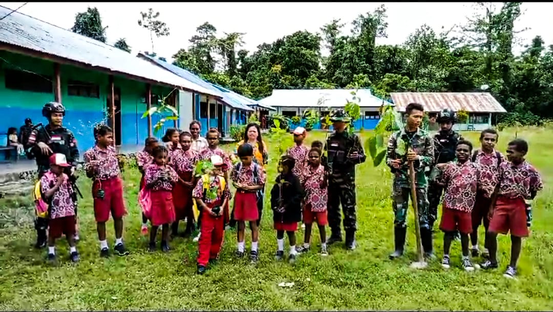 Satgas Yonif 122/TS Pos Pitewi Berikan Sosialisasi Penghijauan Kepada Anak-Anak Sejak di Bangku SD YPPK Pikere Papua