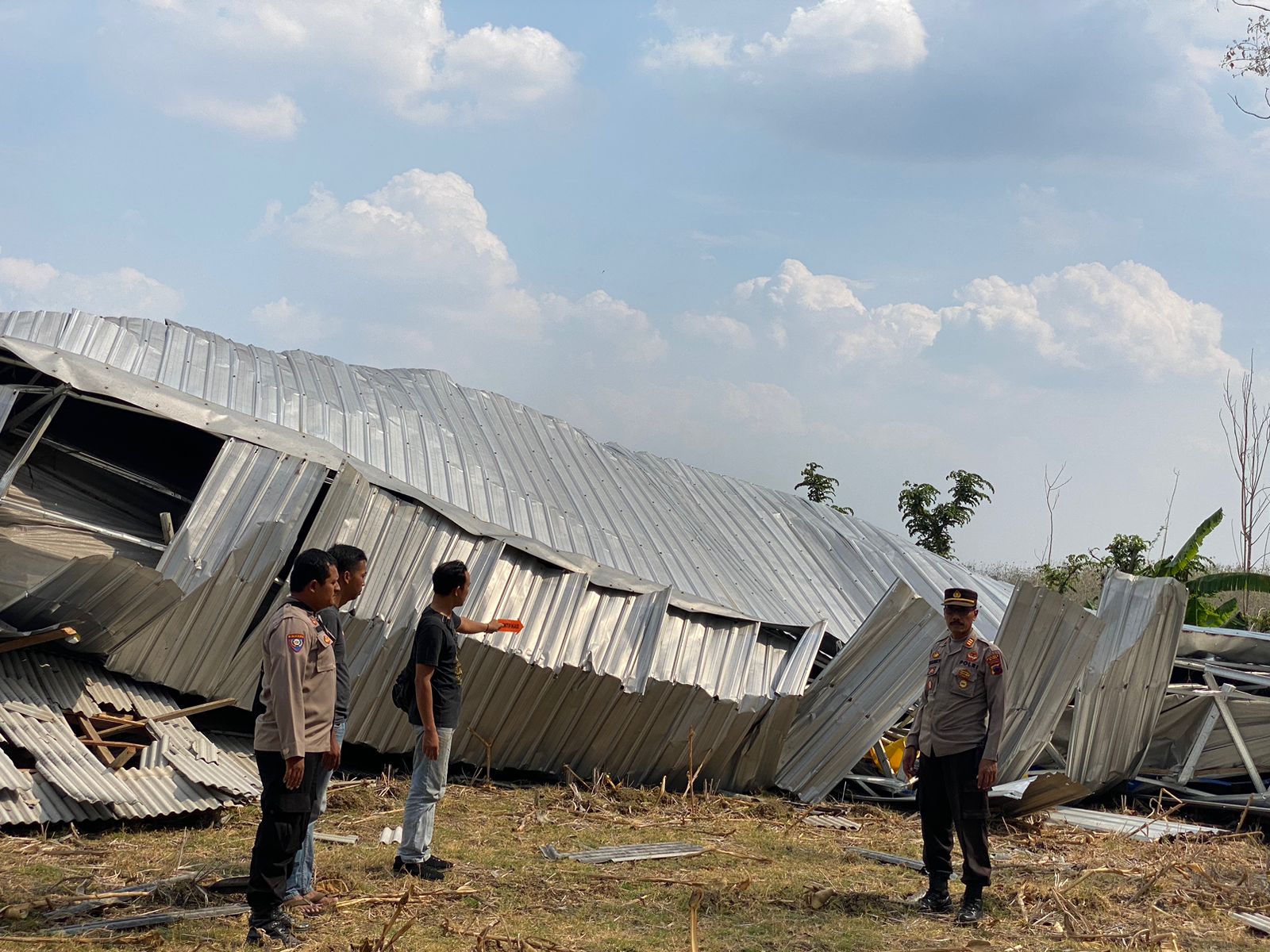 “Kandang ayam yang rubuh ini terbuat dari baja ringan dan galfalum dengan ukuran 12x72m dan ternagkat dari pondasinya, untuk isi kandang ada kurang lebih 10.000 ayam berumuir 21 hari. ” kata AKP Sulbekti.