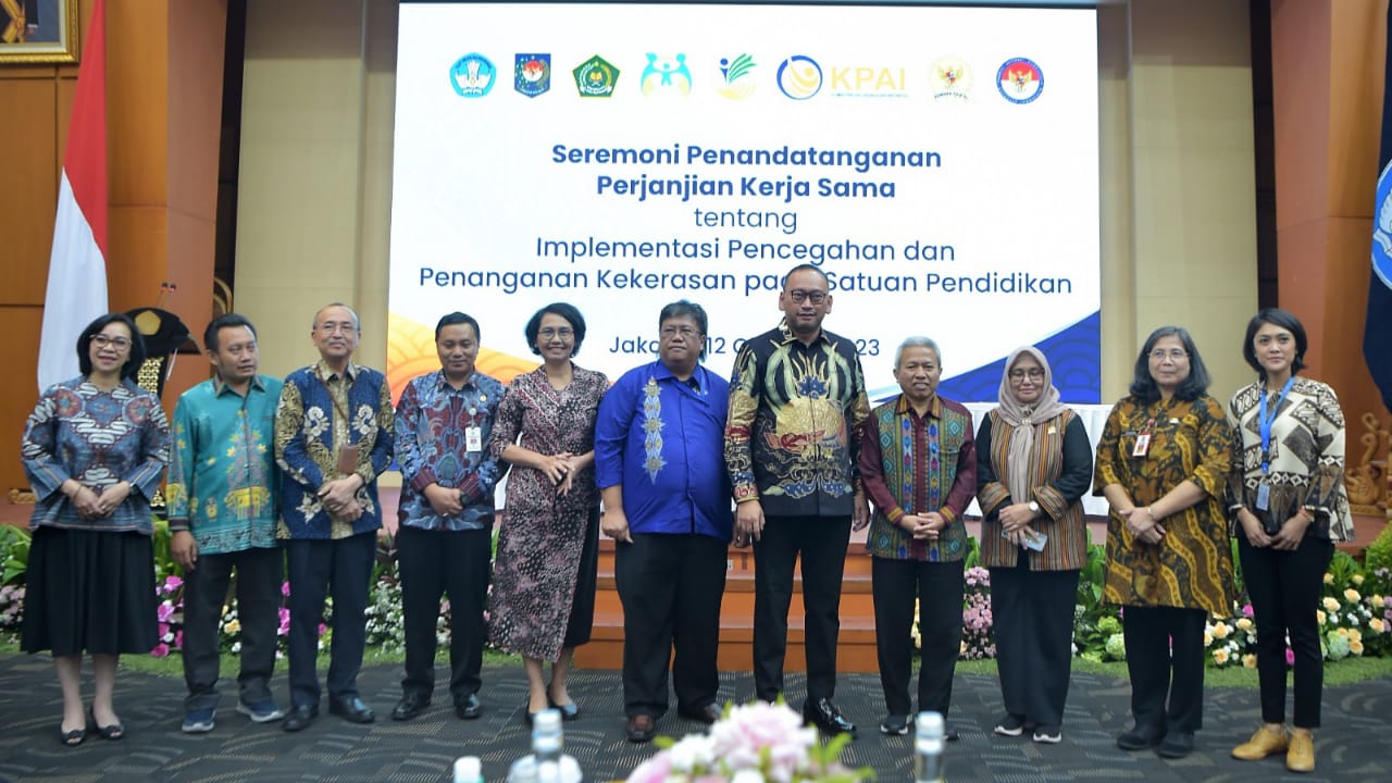 Dalam rilis yang diterima redaksi, Senin (16/10), PKS tentang Implementasi Pencegahan dan Penanganan Kekerasan pada Satuan Pendidikan (PPKSP) ditandatangani oleh pejabat setingkat eselon 1 dari 8 kementerian/lembaga yang terdiri dari Kementerian Pendidikan, Kebudayaan, Riset, dan Teknologi; Kementerian Dalam Negeri; Kementerian Agama; Kementerian Pemberdayaan Perempuan dan Perlindungan Anak; Kementerian Sosial; Komisi Perlindungan Anak Indonesia; Komisi Nasional Hak Asasi Manusia; serta Komisi Nasional Disabilitas di Gedung A Kemendikbudristek, Senayan Jakarta, beberapa waktu lalu.