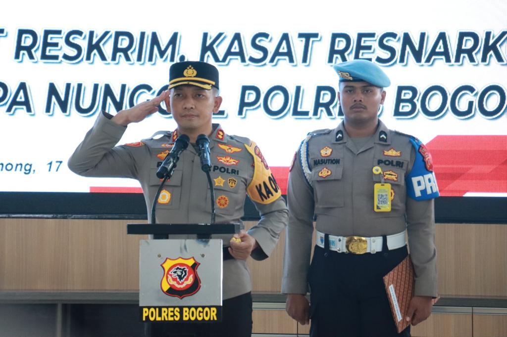 Dalam pelaksanan upacara pelantikan jabatan tersebut Kapolres Bogor AKBP Rio Wahyu Anggoro S.H.,S.I.K memimpin secara langsung pelantikan jabatan Kasat Reskrim yang semula di jabat AKP Muhammad Ilham SIK., MM., CPHR. saat ini di jabat oleh AKP Teguh Kumara S.Tr.K., S.I.K. , Kasat Narkoba yang semula di jabat AKP Deni Nurcahyadi, S.I.K. saat ini di jabat oleh AKP Nur Istiono S.I.K, Kasat Intel yang semula di jabat AKP Bagus Azi Lesmana Putra S.I.K., MM saat ini di jabat oleh AKP Ari Nugroho S.I.K., M.Si , dan Kapolsek Klapanunggal yang semula di jabat AKP Irrine Kania Defi S.I.K.,M.M saat ini di jabat oleh IPTU Silfi Adi Putri S.Tr.K., S.I.K.