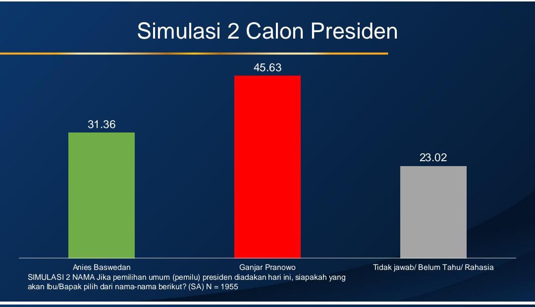 Ketika responden ditanyakan berkenaan dengan apabila pemilihan umum (pemilu) presiden diadakan hari ini, siapakah yang akan Bapak/Ibu pilih, hasilnya Prabowo masih berada di atas puncak.