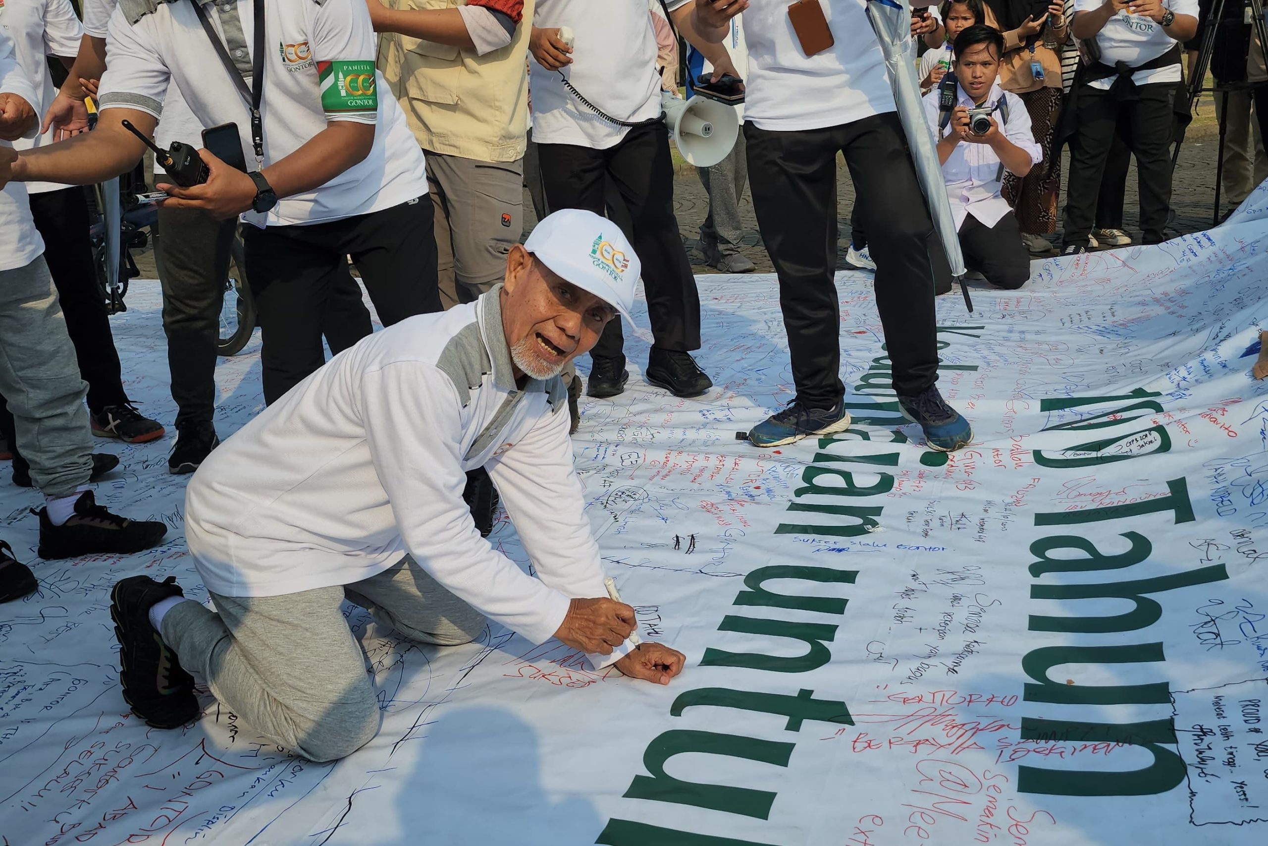 Jakarta (HSB) – Puluhan Ribu Alumni Gontor Tandatangani Petisi Kedamaian dan Persatuan Indonesia serta Jalan Sehat dalam rangka serangkaian acara memperingati 100 Tahun Gontor, di Silang Monas Patung Kuda, Jakarta Pusat, Minggu (21/10/2023).