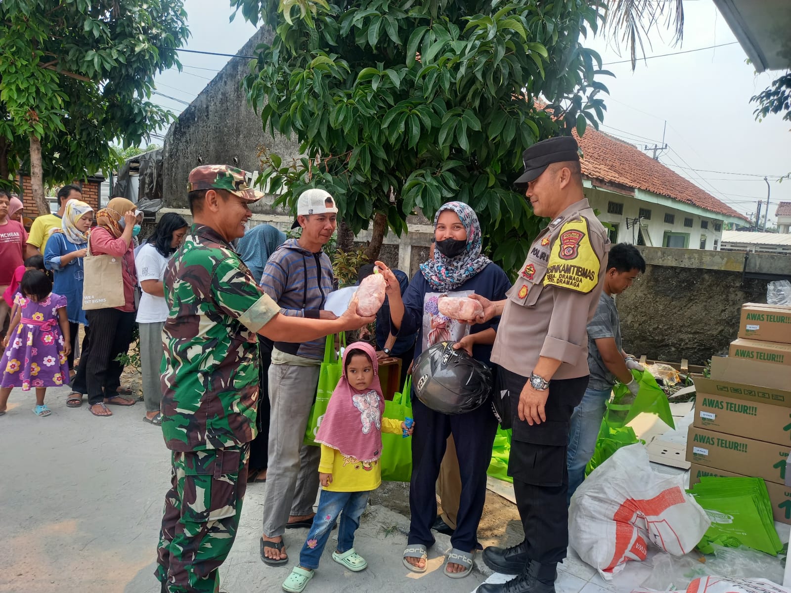 Bhabinkamtibmas bersama Babinsa membantu melakukan monitoring dan pengamanan serta membantu lansia yang akan mengambil bantuan sosial berupa Daging Ayam dan Telur tersebut.