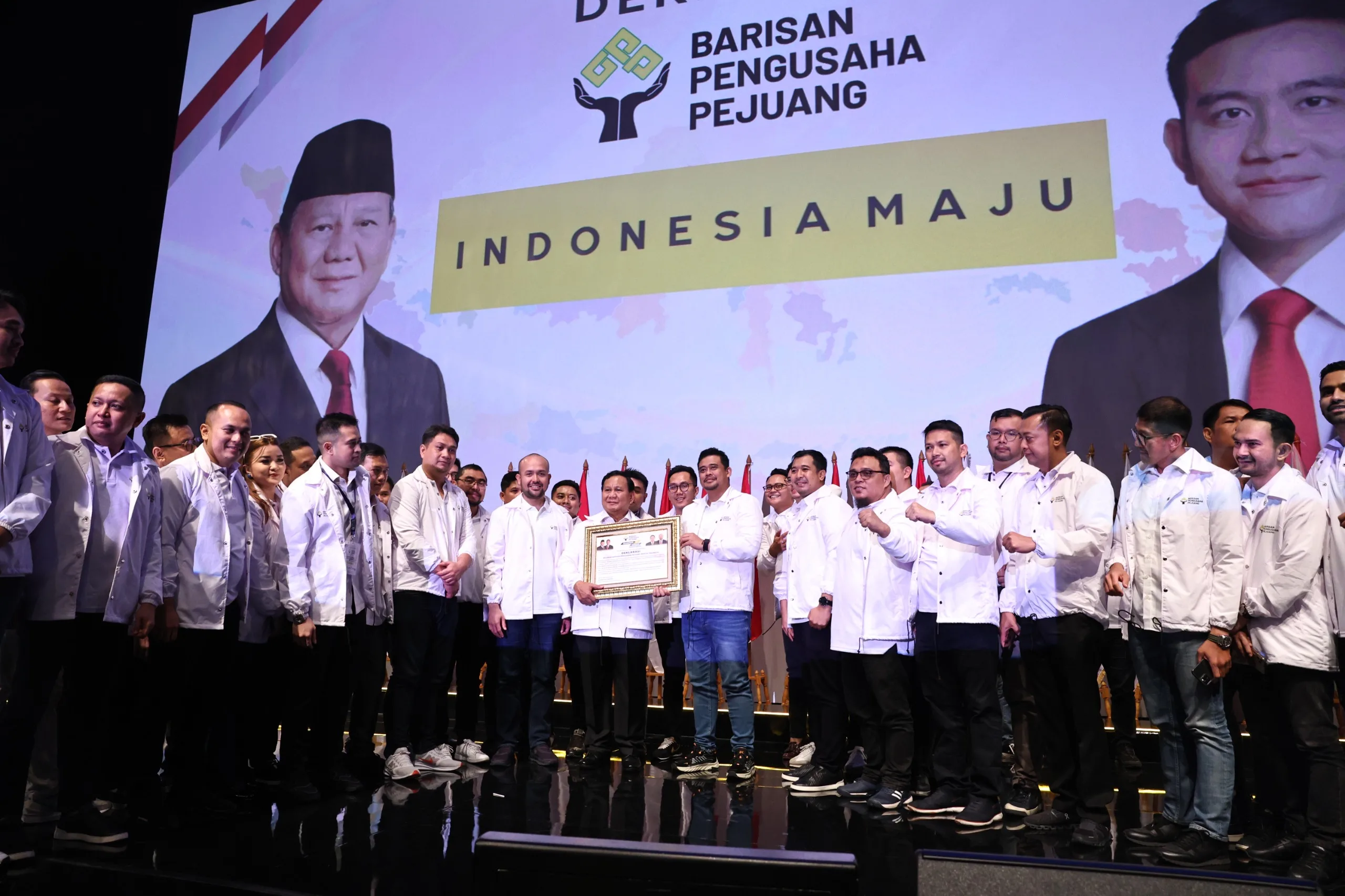 “Atas nama pribadi dan Gibran Rakabuming Raka, saya terima dukungan ini. Saya merasa besar hati karena yang deklarasi ini adalah para pengusaha muda,” ucap Prabowo.