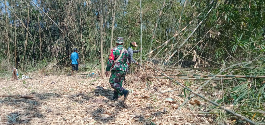 Tumbuhkan Jiwa Gotong Royong, Babinsa Bantu Potong Bambu Warga