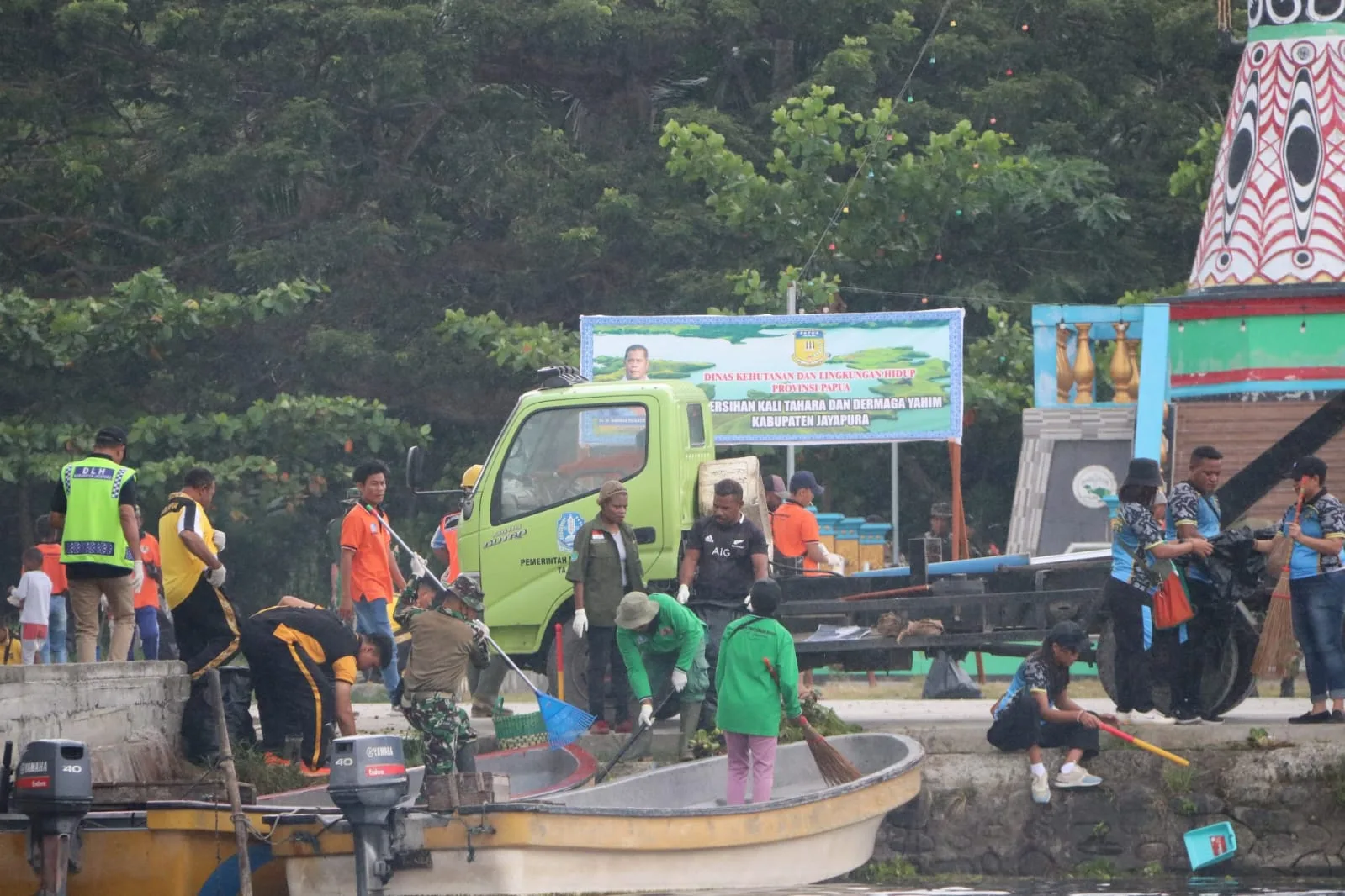 Yonif 751/VJS Turut Ambil Bagian Dalam Bersih-Bersih Danau Sentani Bersama Dinas Kehutanan Dan Lingkungan Hidup Provinsi Papua