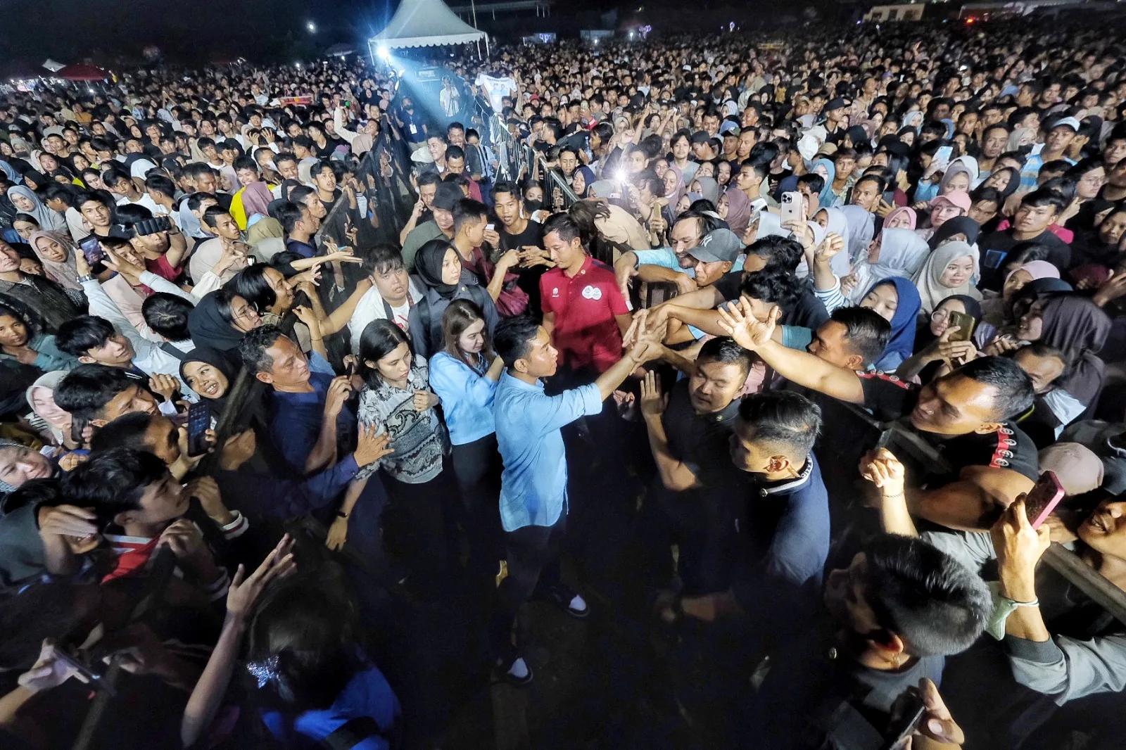 Jambi || Cawapres Koalisi Indonesia Maju Gibran Rakabuming Raka berkunjung ke Jambi dan mengajak warga menonton konser musik bertajuk “Indonesia Maju” yang diramaikan band Repvblik dan Angga Candra, Jumat (17/11).