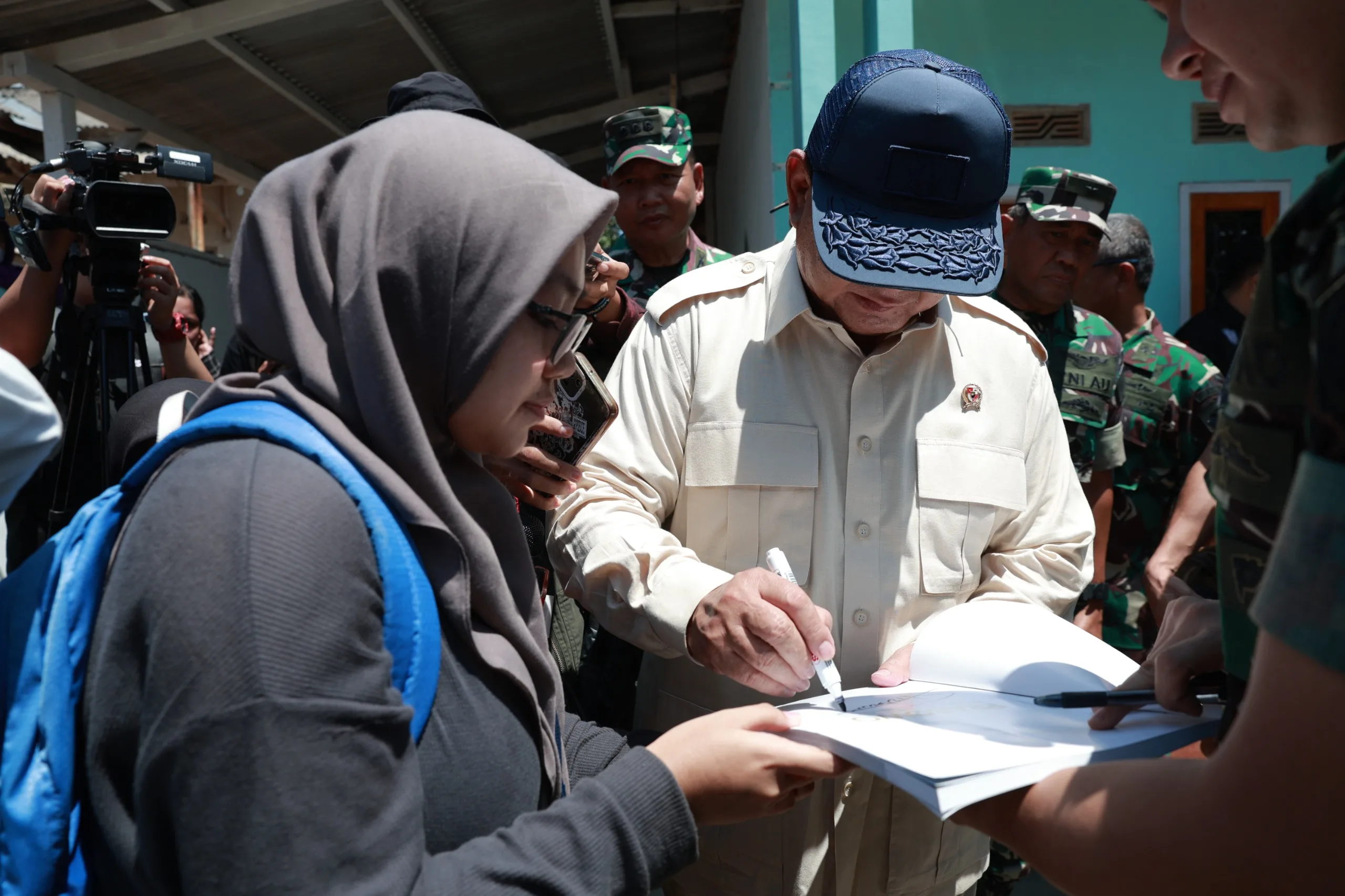 Desa Pamubulan, Banten — Calon Presiden Nomor Urut 2 yakni Prabowo Subianto yang juga sebagai Menteri Pertahanan itu dikejar oleh seorang Mahasiswi Semester 5 yang ingin meminta tanda tangan di buku Prabowo bertajuk Prabowo Rekam Foto Sang Patriot.