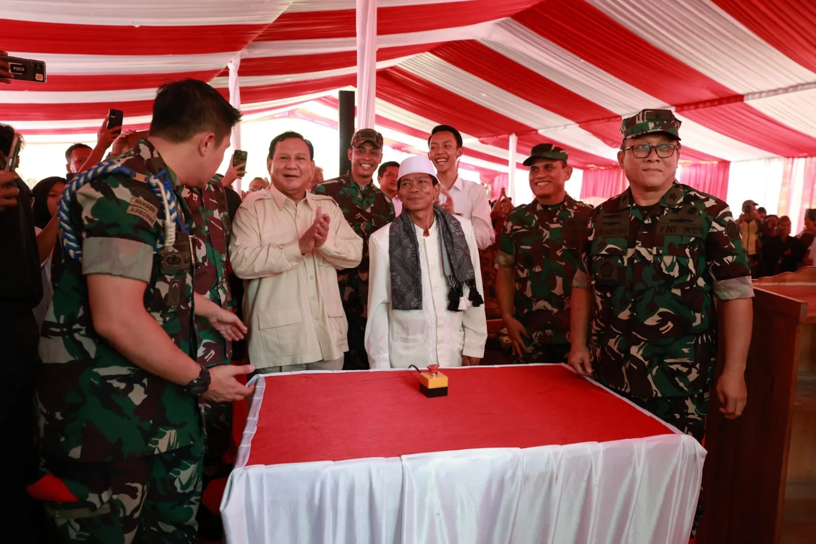 Prabowo tiba di Desa Pamubulan sekitar pukul 11.00 WIB, didampingi Rektor Universitas Pertahanan (Unhan) RI, Mayjen TNI Jonni Mahroza.