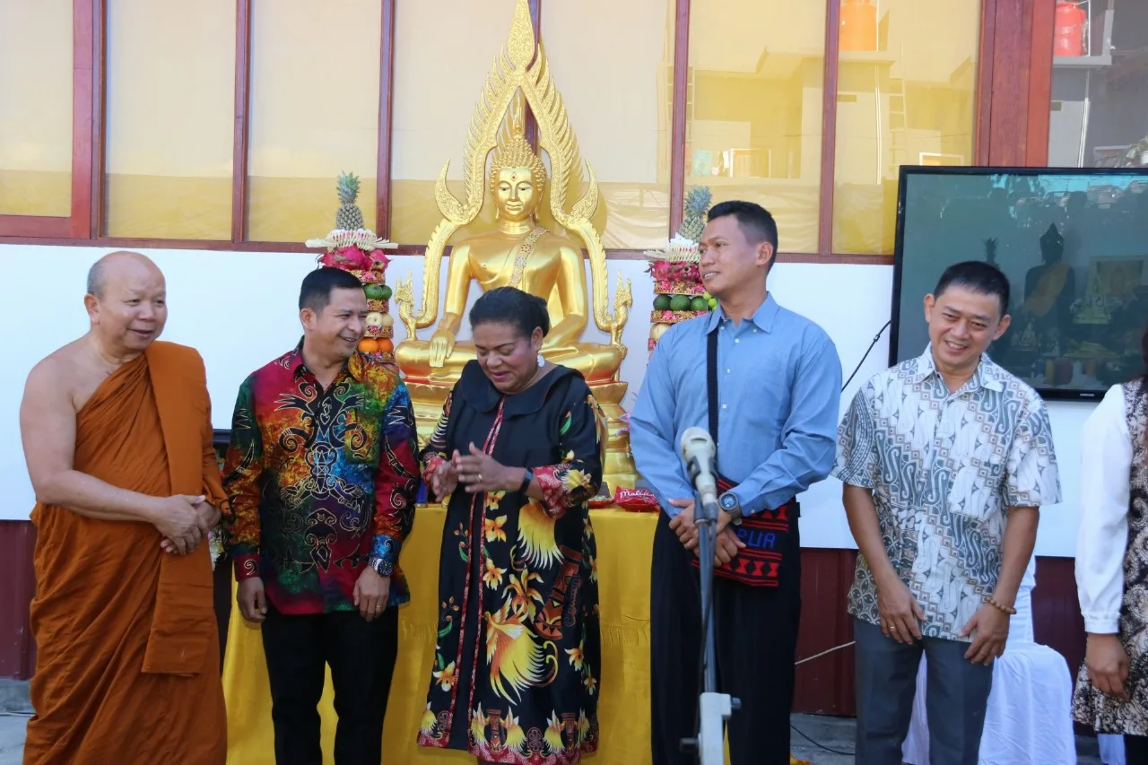 Sentani – Komandan Batalyon Infanteri 751/Vira Jaya Sakti Mayor Inf Erwan Harliantoro, S.H., M.Han. menghadiri peringatan Hari Raya Kathina Puja 2567 BE/2023 Masehi dan Syukuran Dhamma Sala Dhamma Vijaya Kuti yang digelar di Vihara Cycloop Dhammajaya, Distrik Sentani, Kab. Jayapura. Minggu (19/11/2023)