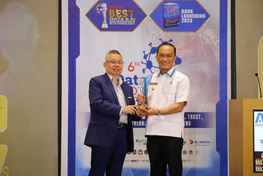 Penerimaan penghargaan berlangsung pada acara E Summit DataGovAI Awards 2023 di Jakarta Convention Center, Rabu, 22 November 2023.