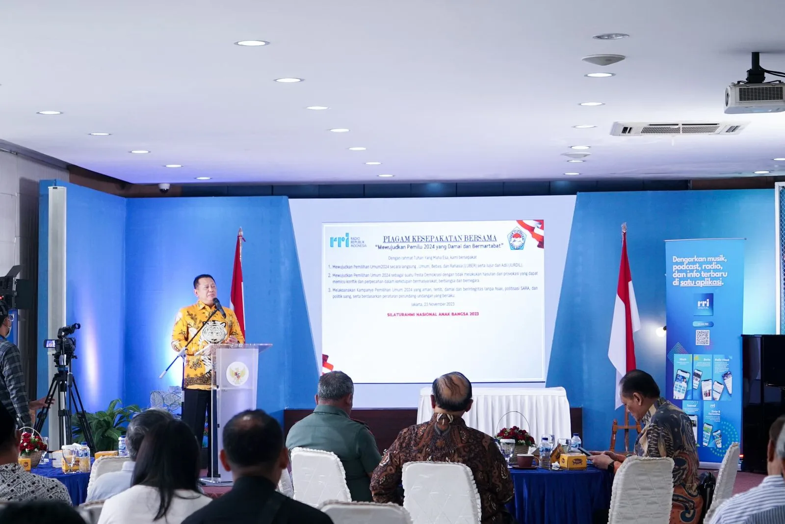 “Selain itu, kita juga harus meminimalisir faktor risiko mulai dari penyediaan dan distribusi logistik Pemilu, hingga keselamatan panitia penyelenggara Pemilu. Sehingga Pemilu 2024 bisa dijalankan dengan riang gembira, bukan dengan penuh permusuhan dan kebencian. Apalagi sampai membuat perpecahan kebangsaan,” ujar Bamsoet dalam Silaturahmi Nasional Anak Bangsa Tahun 2023, di kantor Lembaga Penyiaran Publik Radio Republik Indonesia (LPP RRI), Jakarta, Kamis (23/11/23).