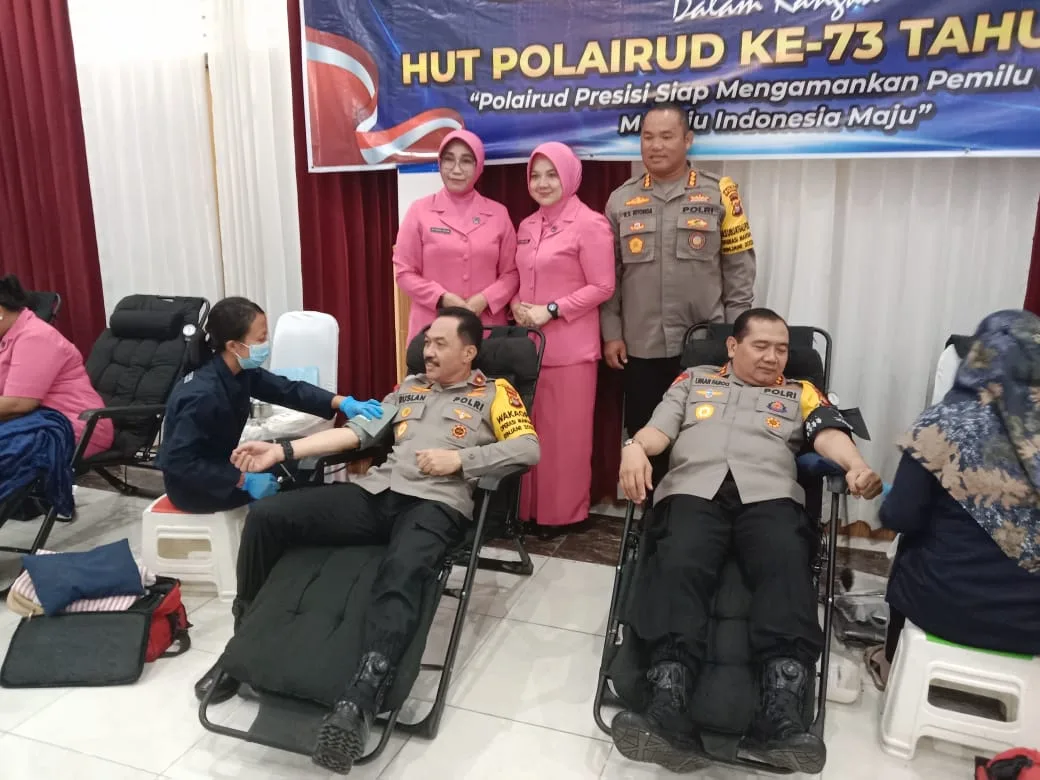 Mataram – Dalam rangka menyambut Hari Ulang Tahun (HUT) Polairud ke-73 Tahun 2023, Polda NTB menggelar Bhakti kesehatan donor darah, yang di hadiri Kapolda NTB, Ketua Bhayangkari Daerah NTB, Wakapolda NTB, Irwasda Polda NTB, PJU Polda NTB, para Kasat Polairud, Bhayangkari Ranting Ditpolairud, Personil TNI, dan Basarnas Provinsi NTB.