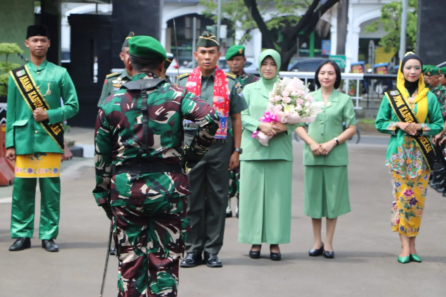 Pengalungan Bunga dan Tarian Topeng Khas Betawi Hiasi Acara Tradisi Peneriman Warga Baru Danrem 051 Wijakarta
