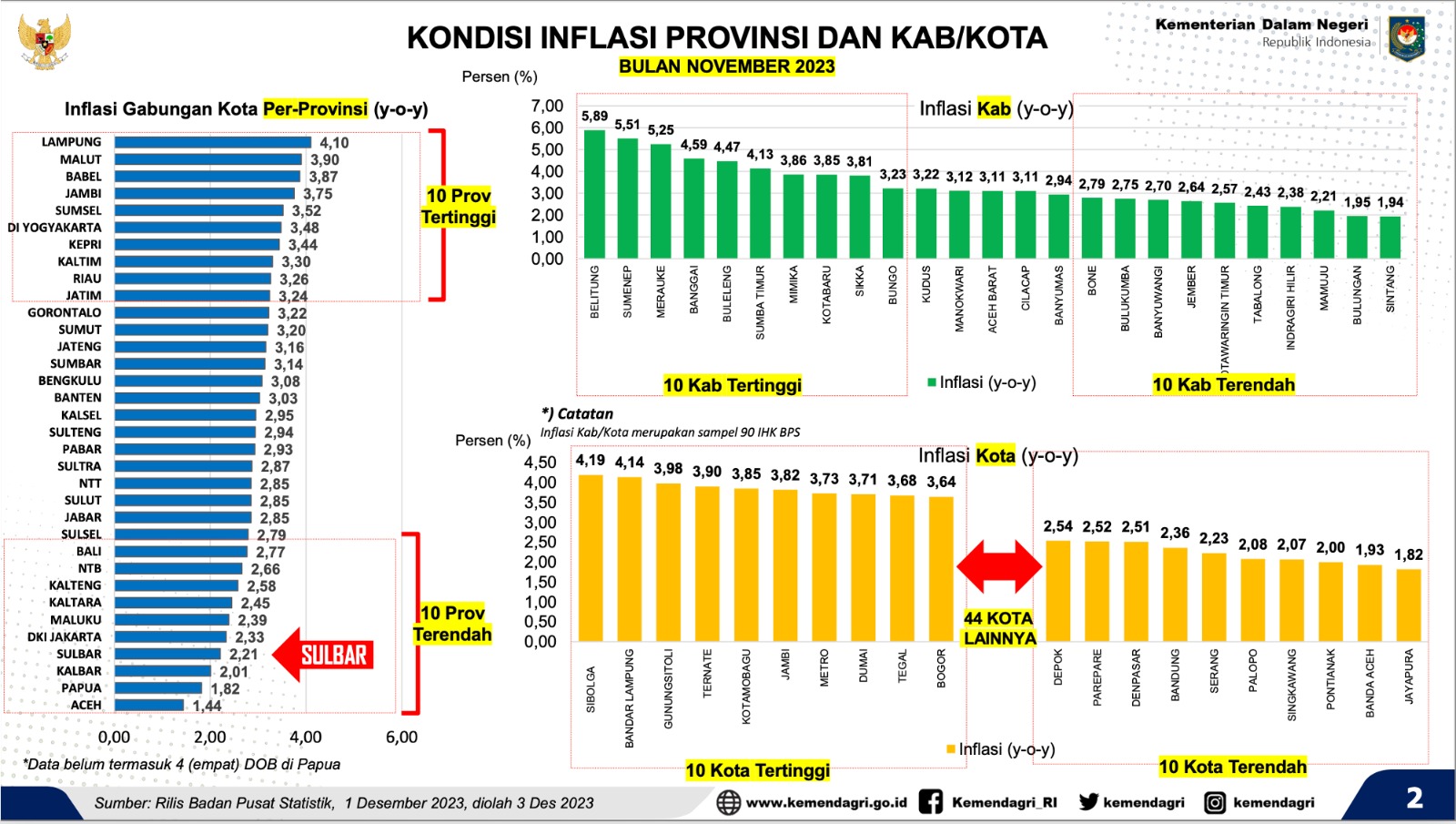 Hal itu disampaikan PJ Gubernur Sulbar Prof. Zudan Arif Fakrulloh, berdasarkan data terbaru yang dirilis Kementerian Dalam Negeri per 1 Desember 2023 usai mengikuti Rakor Inflasi di Kemendagri , Senin, 4 Desember 2024.