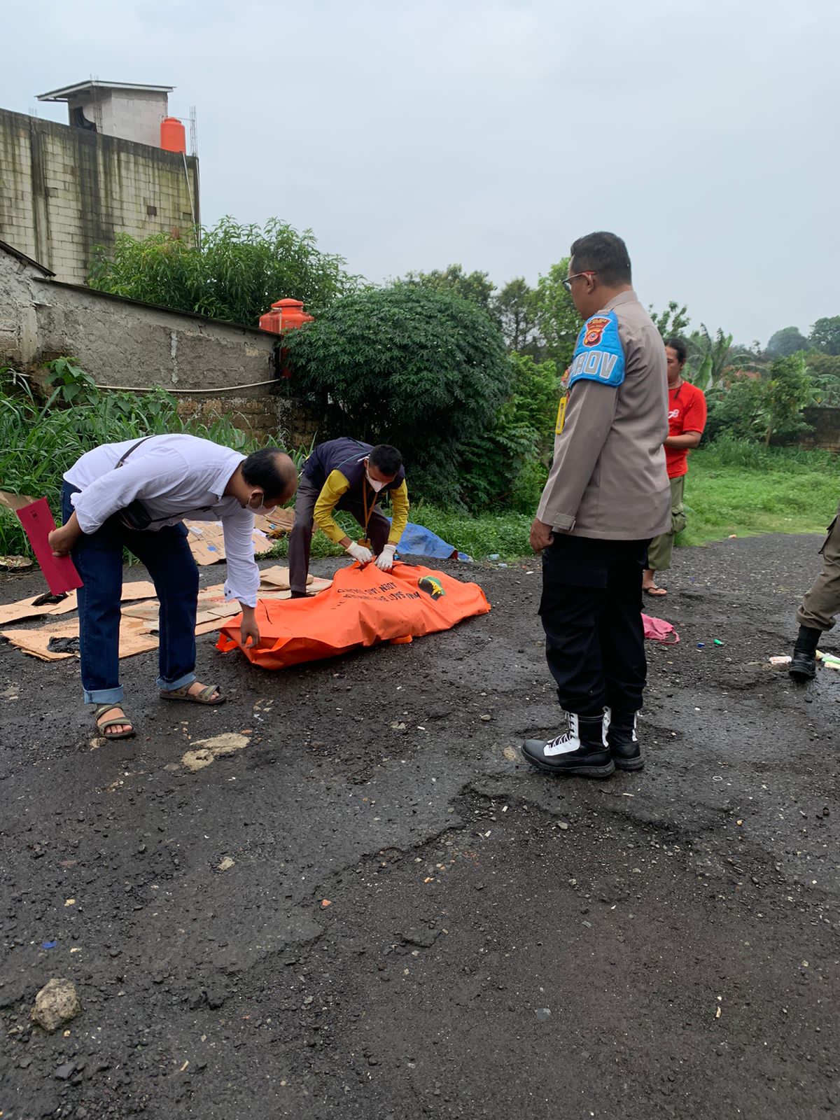 Polsek Parung Olah TKP Penemuan Jenazah Seorang Laki – Laki dipinggir Jalan