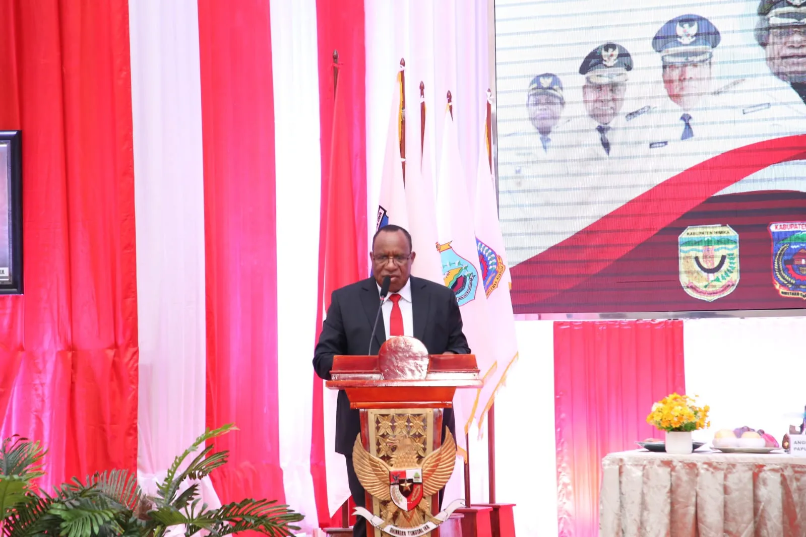 Nabire – Wakil Menteri Dalam Negeri (Wamendagri) John Wempi Wetipo mengimbau Penjabat (Pj.) Gubernur Papua Tengah fokus menuntaskan 12 agenda utama roadmap percepatan pembangun Daerah Otonom Baru (DOB). Dalam konteks tersebut, Wempi secara khusus meminta Pj. Gubernur untuk dapat menyelesaikan pemenuhan sarana dan prasarana pemerintahan (praspem).