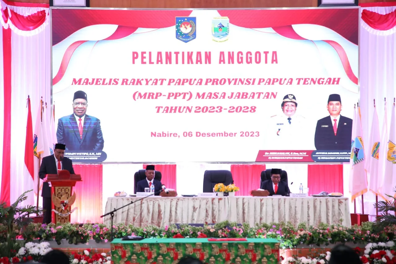 Dalam kesempatan itu, Wempi menjelaskan terpilihnya anggota MRP Provinsi Papua Tengah masa jabatan tahun 2023-2028 telah dilakukan melalui proses panjang. Sempat terjadi kendala dan dinamika yang menyebabkan proses pelantikan anggota MRP Provinsi Papua Tengah dilakukan dalam dua tahap.
