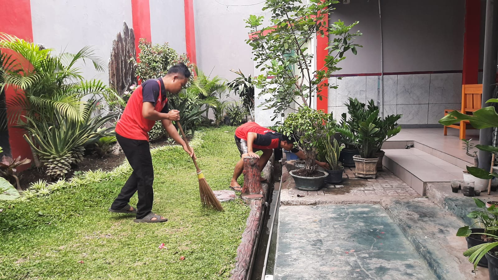 Guna mewujudkan kenyamanan dan keindahan di lingkungan Rutan, warga binaan yang dipercayakan sebagai tamping kebersihan untuk bergotong – royong dalam giat bersih-bersih lingkungan sebagai upaya menciptakan suasana yang nyaman dan asri.
