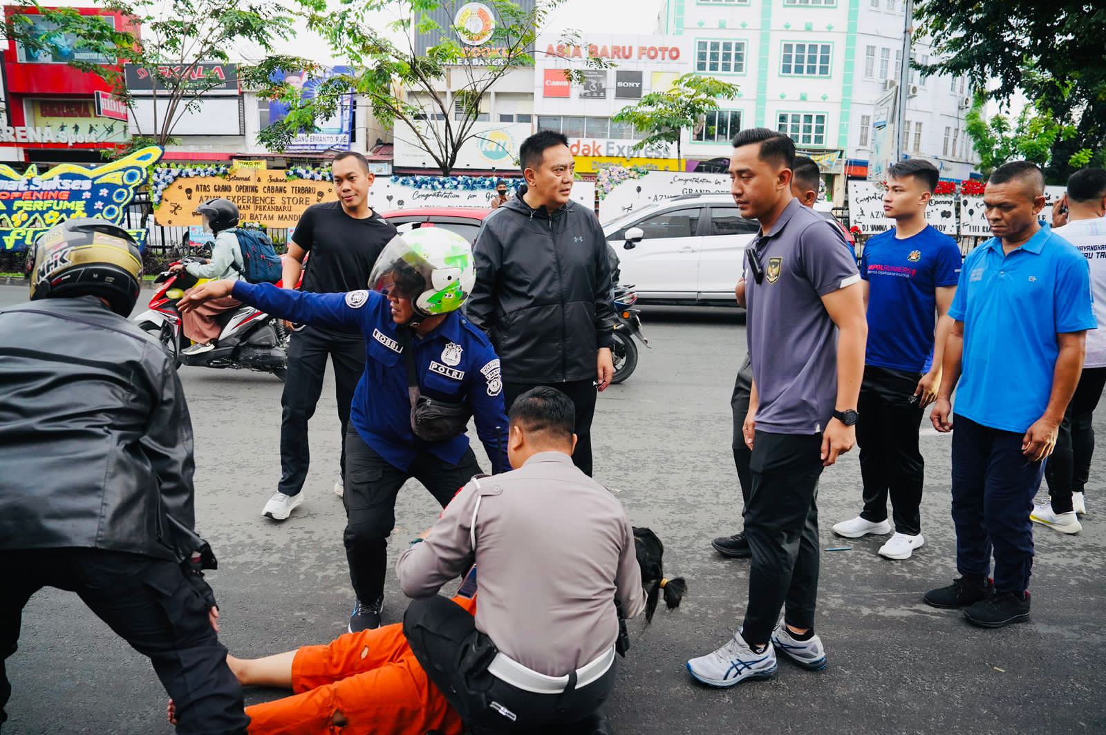 Setelah korban dibawa, Irjen Iqbal tak langsung pergi. Ia berdiri di jalanan mengatur arus lalu lintas yang memang padat di pagi hari.