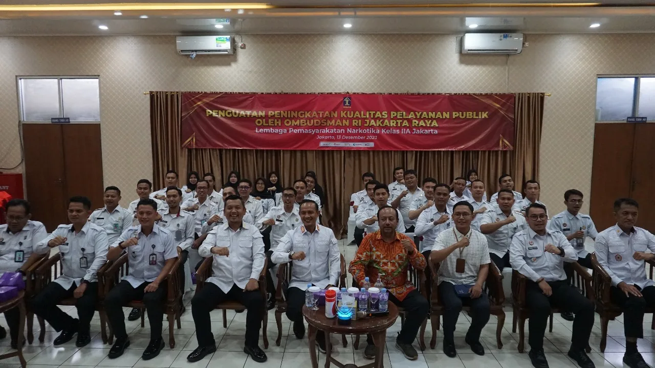 Jakarta – Kepala Lapas Narkotika Kanwil Kemenkumham DKI Jakarta, Fonika Affandi, menerima kedatangan Kepala Ombudsman RI Perwakilan Jakarta Raya, Dedy Irsan, Asisten Muda Ombudsman RI Jakarta Raya, Rio Saputro beserta tim kesekretariatan Ombudsman RI Jakarta Raya.Pada Rabu (13/12),