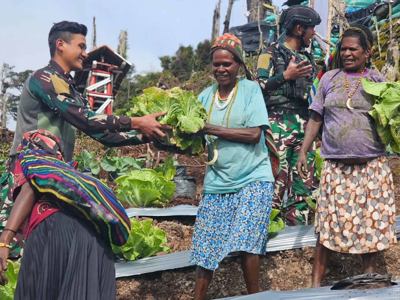 Sambut Perayaan Natal Penuh Kasih, Tri Dharma Ajak Warga Intan Jaya Panen Sawi Putih