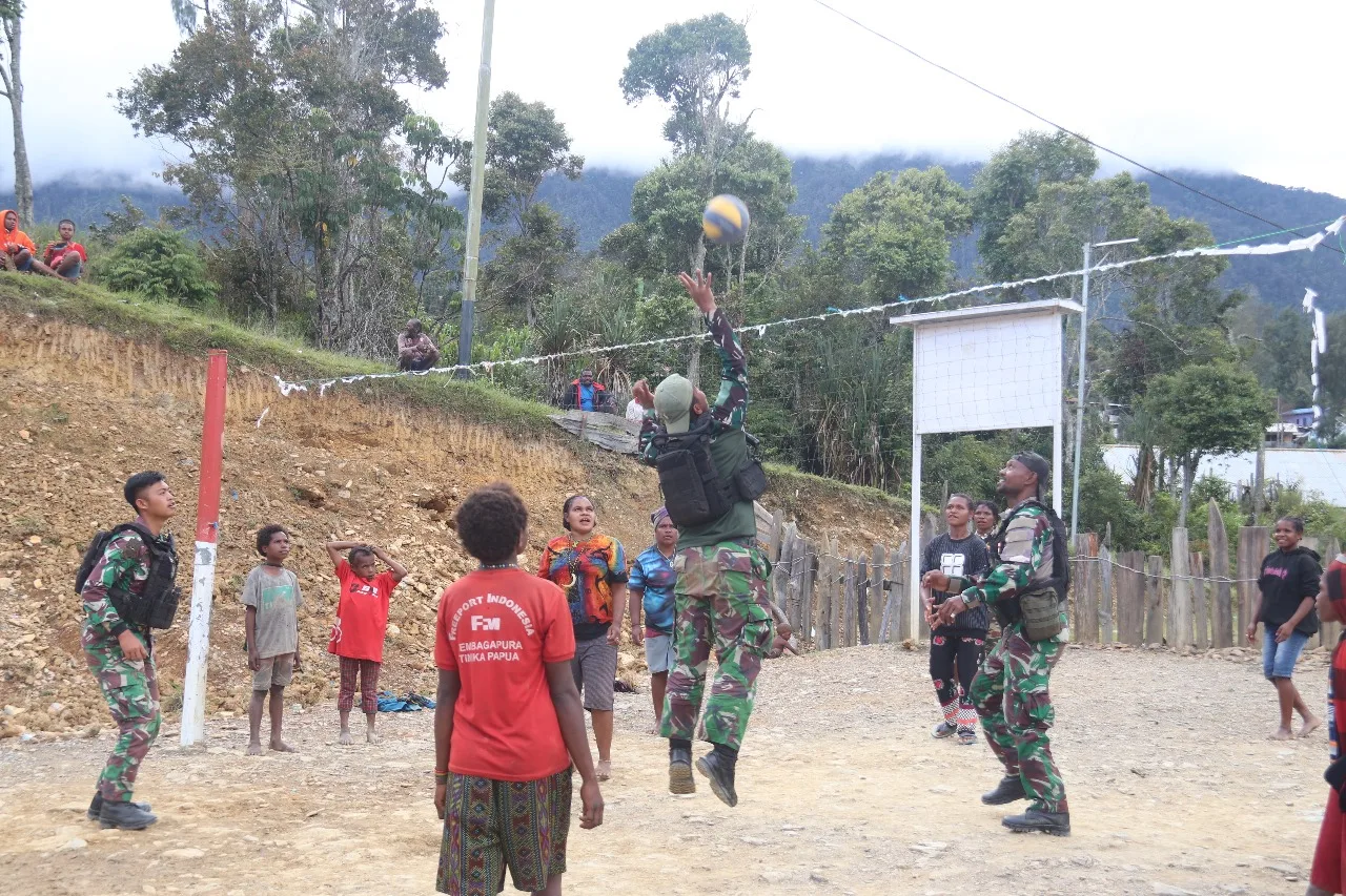Intan Jaya – “Mens Sana in Corpore Sano, Dalam Tubuh yang Sehat, Terdapat Jiwa yang Kuat”. Menyadari bahwa kesehatan adalah investasi paling berharga bagi manusia, anggota Pos Mamba Satgas Pamtas Mobile Yonif 330 Tri Dharma mengajak masyarakat bermain voli bersama, bertempat di Kampung Bazemba, Kab. Intan Jaya, Papua Tengah, pada Jumat (15/12/23).