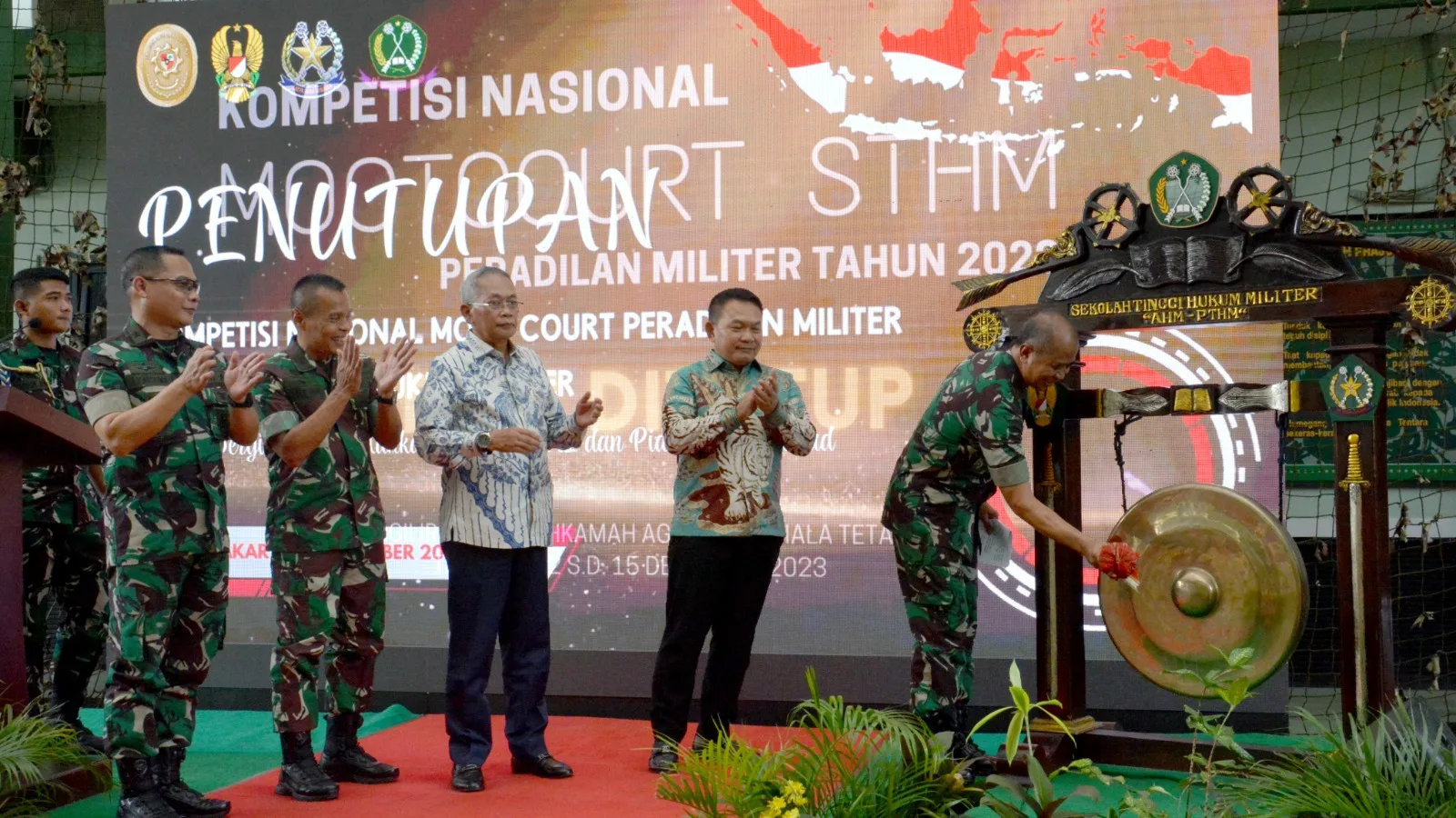 Jakarta – Wakil Kepala Staf TNI AD (Wakasad), Letjen TNI Arif Rahman resmi menutup kompetisi Moot Court Peradilan Militer yang memperebutkan Piala Bergilir Ketua Mahkamah Agung Republik Indonesia (MA RI) dan Piala Tetap Kasad yang diselenggarakan oleh Sekolah Tinggi Hukum Militer (STHM). Penutupan tersebut ditandai dengan pemukulan gong oleh Wakasad di Lapangan Apel STHM. Jakarta (Jumat, 15/12/2023)