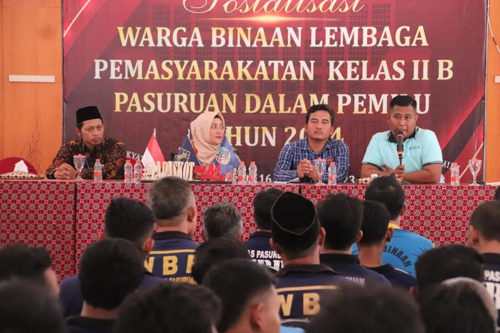 Pasuruan Kota – Menyambut Pemilu tahun 2024 KPU gencar melakukan sosialisasi tata cara pencoblosan surat suara pemilu kepada seluruh warga masyarakat tidak terkecuali para warga binaan pemasyarakatan Lapas Kelas IIB Pasuruan Kanwil Kemenkumham Jawa Timur, Sabtu (16/12/2023).
